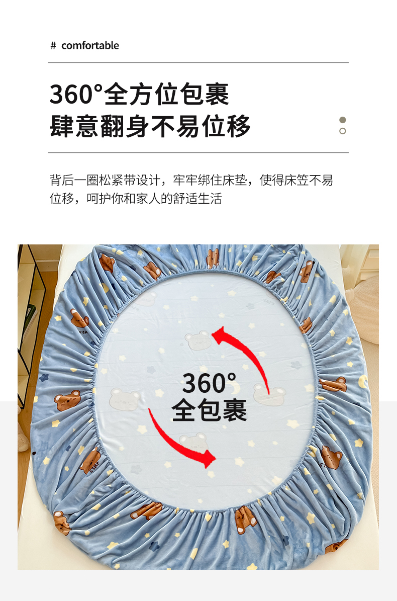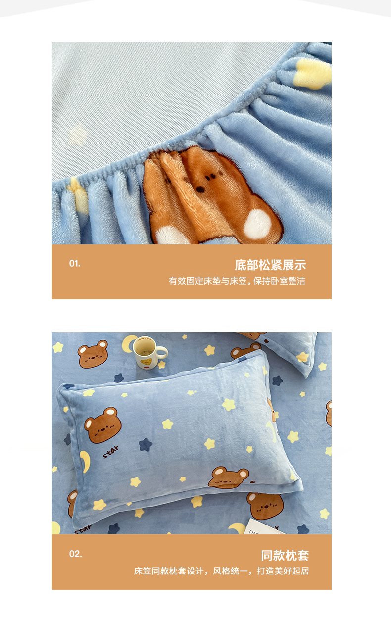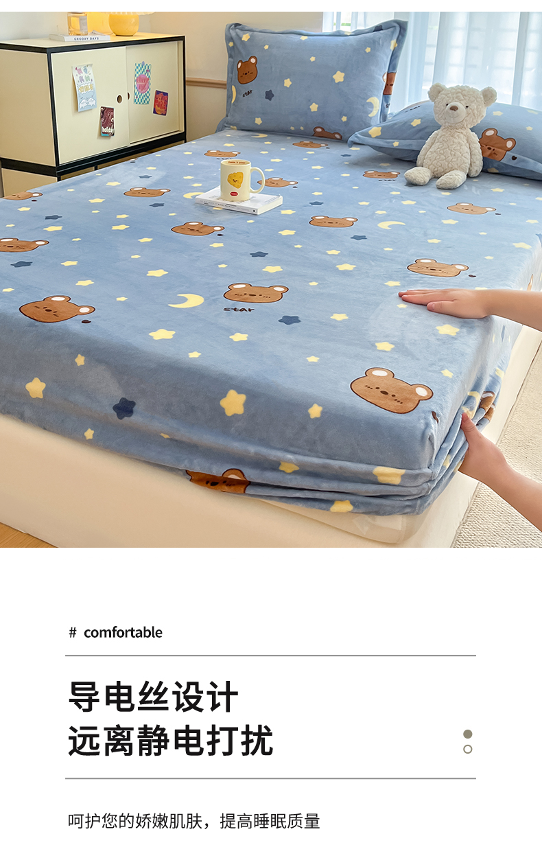 • 91家纺网 家纺一手货源 找家纺 寻米 2025新款高克重加厚保暖牛奶绒床笠-大床图 晚安小熊