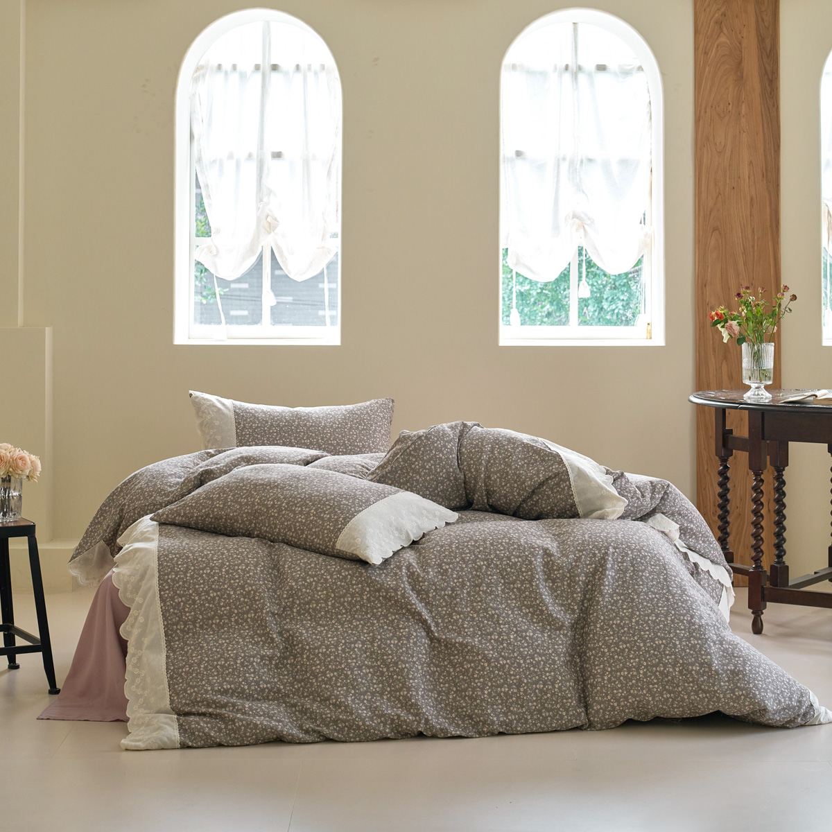 商品名称:洋铭区(原狠狠爱) 2025新款A类全棉蕾丝花边双层纱四件套 红糖花枝