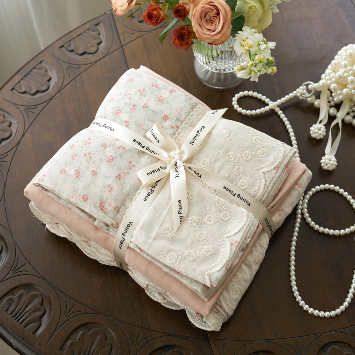 (总)洋铭区(原狠狠爱) 2026新款全棉纯棉双层纱刺绣蕾丝花边件套,蓓蕾兰花,草莓味,蝴蝶粉兔,花语香香,浪漫玫瑰,素雅情花,甜甜小花,小兰雏菊,紫花蔓蔓