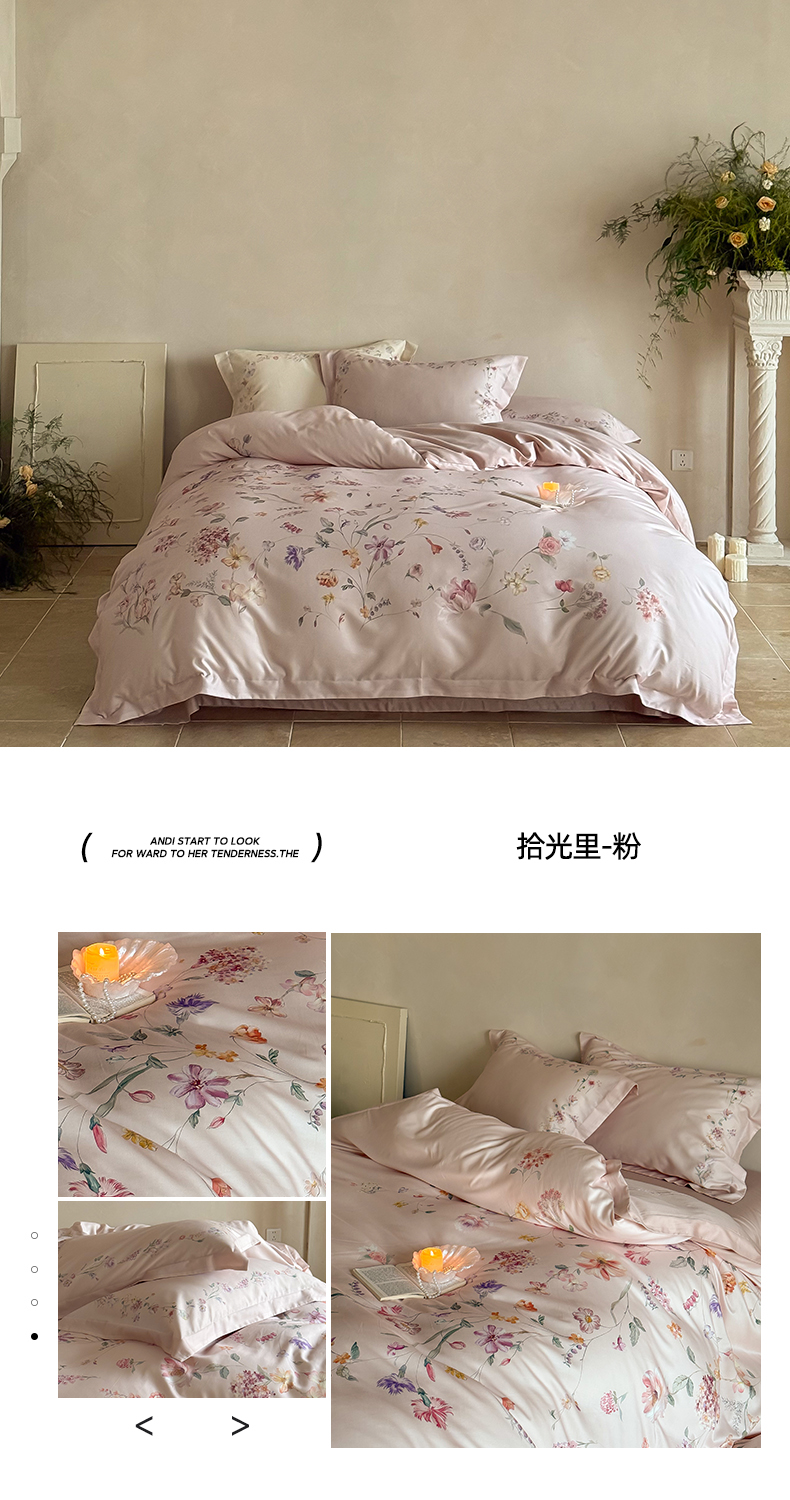 商品名称:禾时 2025新款天丝棉磨毛数码印花四件套 拾光里-粉