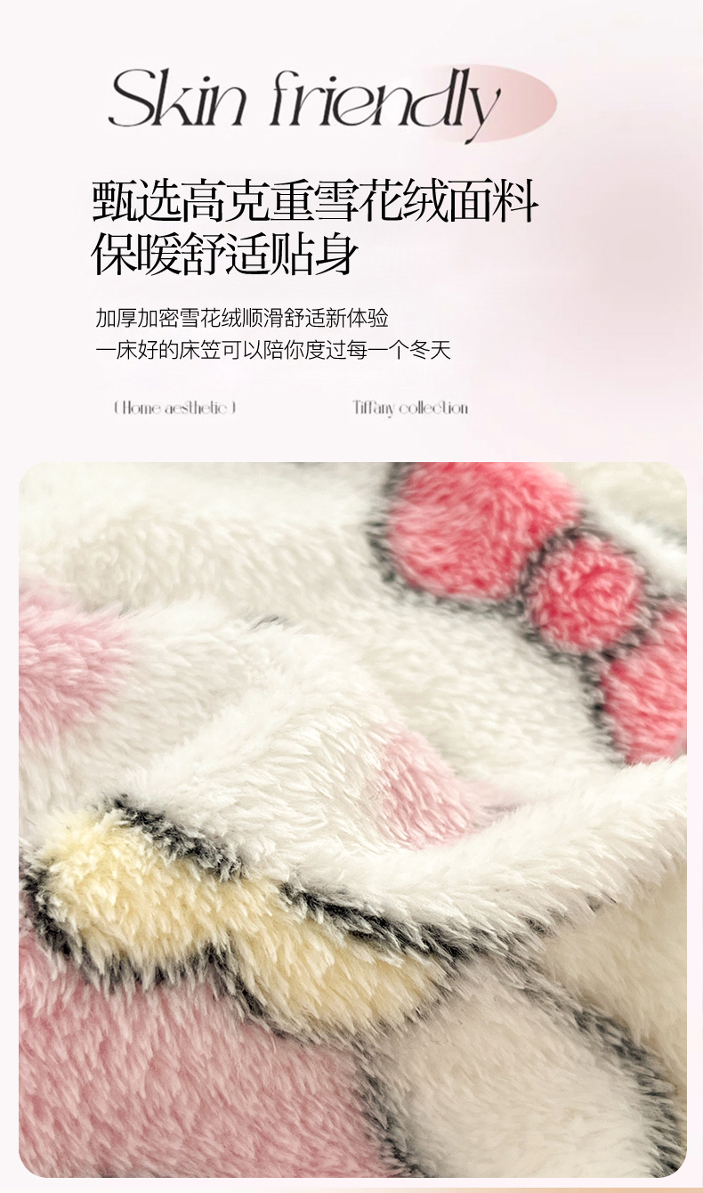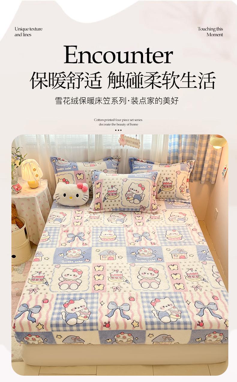 • 91家纺网 家纺一手货源 找家纺 川悦生活 2025新款高克重雪花绒卡通印花加厚保暖大床单床笠 床笠小喵甜心