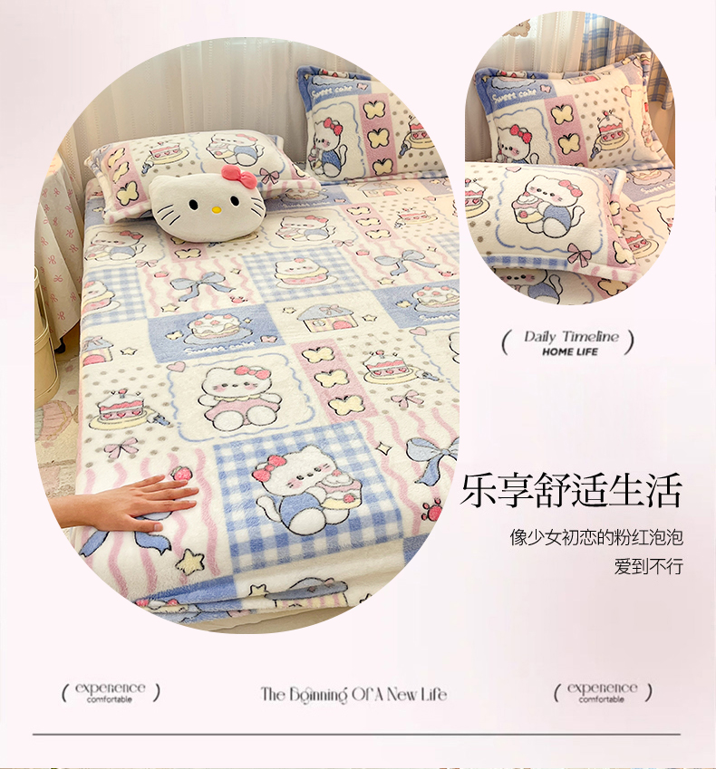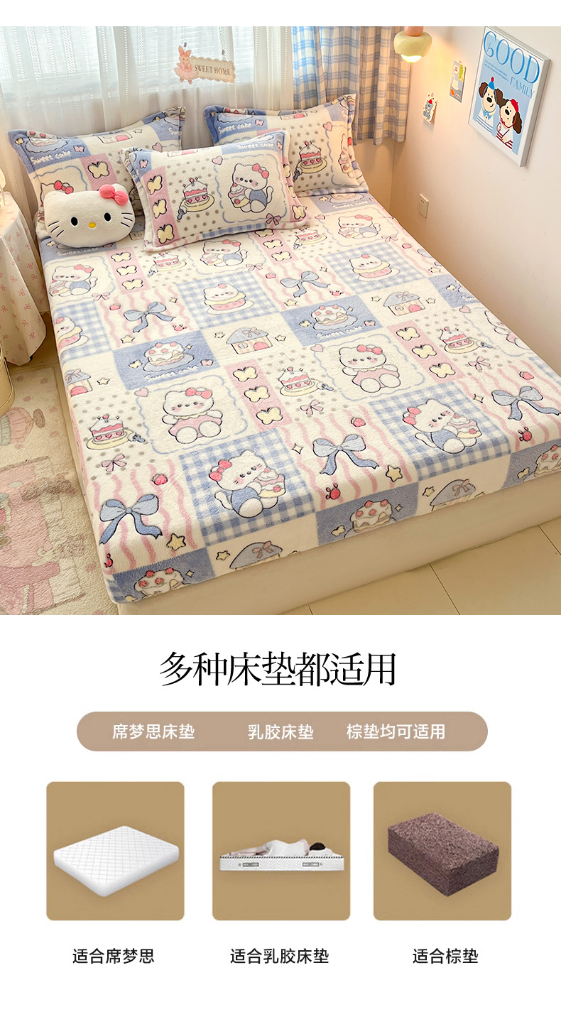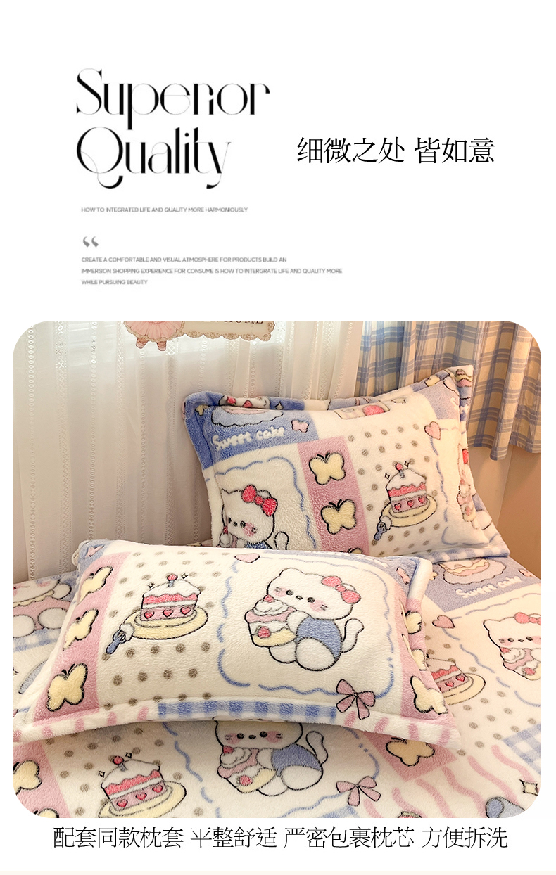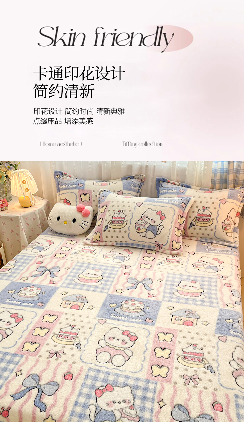 川悦生活 2025新款高克重雪花绒卡通印花加厚保暖大床单床笠 床笠小喵甜心