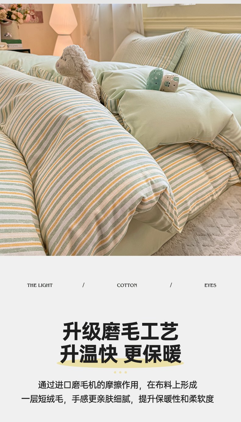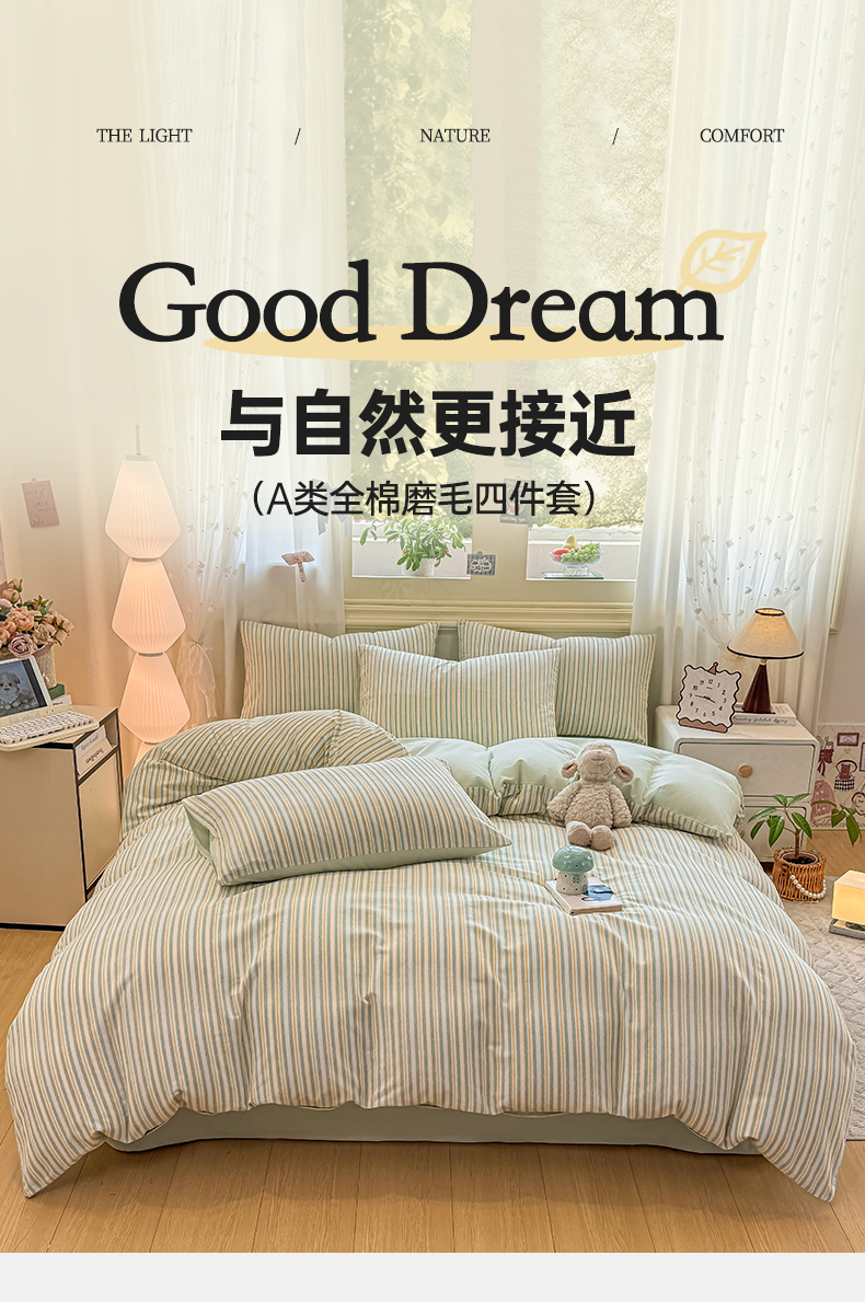 当前位置: 91家纺网 > 商品网购 > 床品套件 > 四件套 > 全棉普通四件套 > 灰鲸 2025新款A类全棉磨毛四件套 静初-绿