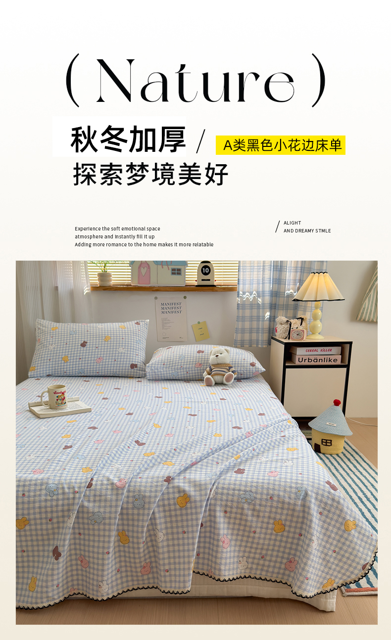 当前位置: 91家纺网 > 商品网购 > 床品套件 > 三件套 > 沐芷 2025 秋冬加厚床单高克重双层纱黑色小花边被单床单三件套 兔莓小格