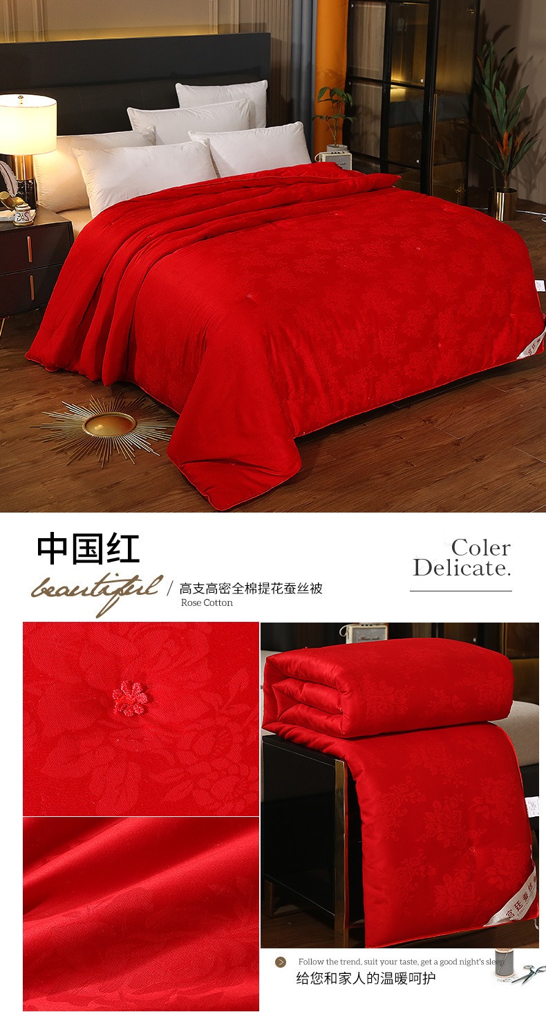 (总)尚品家纺 2025新款全棉金提花手工订花蚕丝被冬被子母被,金提花-玉,金提花-粉,金提花-白,金提花-米黄,婚庆-大红