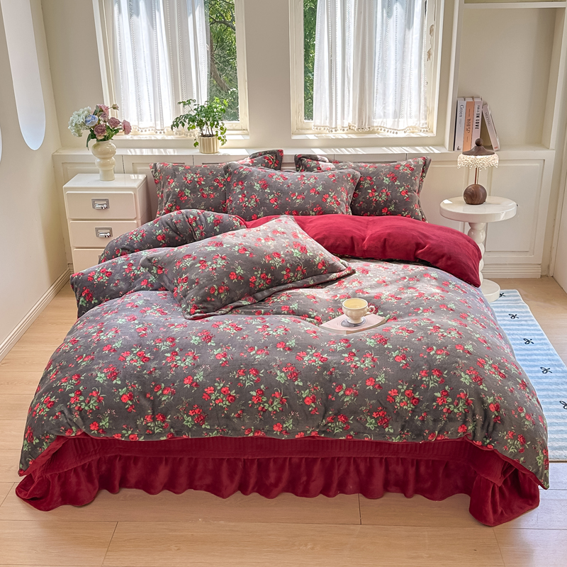 商品名称:欧尚 2025新款高克重牛奶绒加厚保暖印花床盖四件套 玫瑰故事