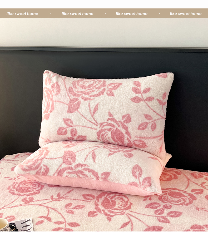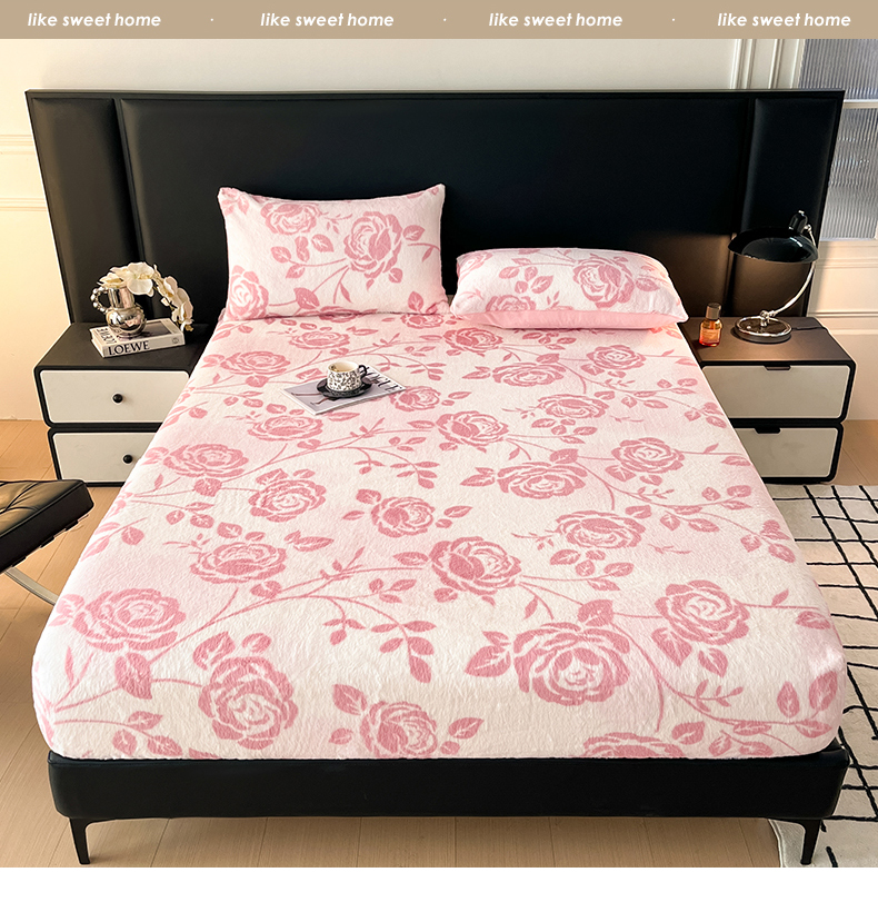 乐窝家纺仓储 2025新款亲肤加厚保暖兔毛绒牛奶绒单品床笠单件床笠-美拉德 美拉德-粉蔷薇