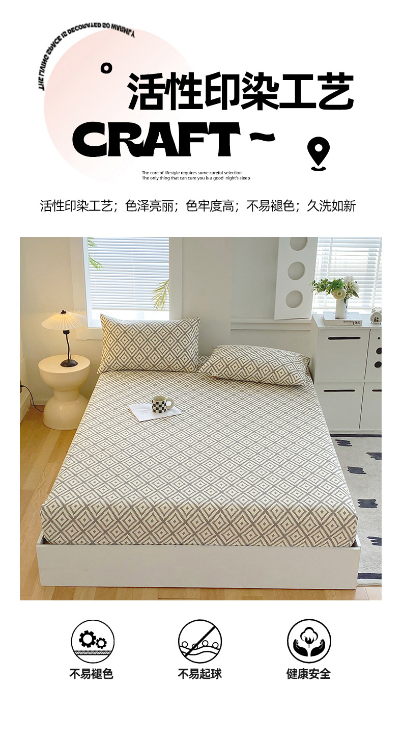 • 91家纺网 家纺一手货源 找家纺 爱彼家纺 2025新款老粗布床笠 老粗布床笠-菱格绿