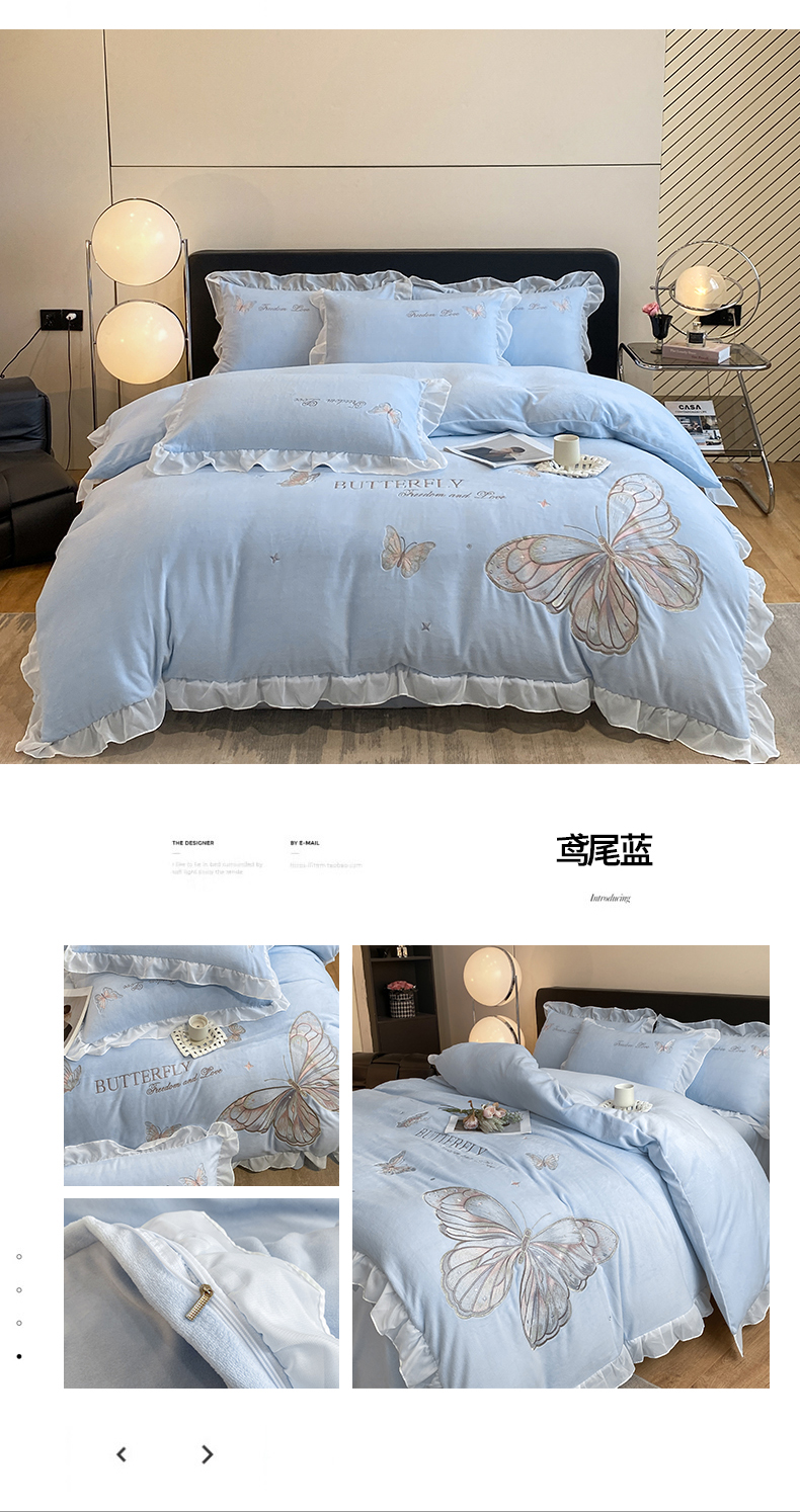 (总)木子家纺 2025新款水洗棉绣花雪纱四件套-云蝶,云蝶-苍玉,云蝶-黛蓝,云蝶-缃黄,云蝶-烟紫,云蝶-瑶白,云蝶-若绿
