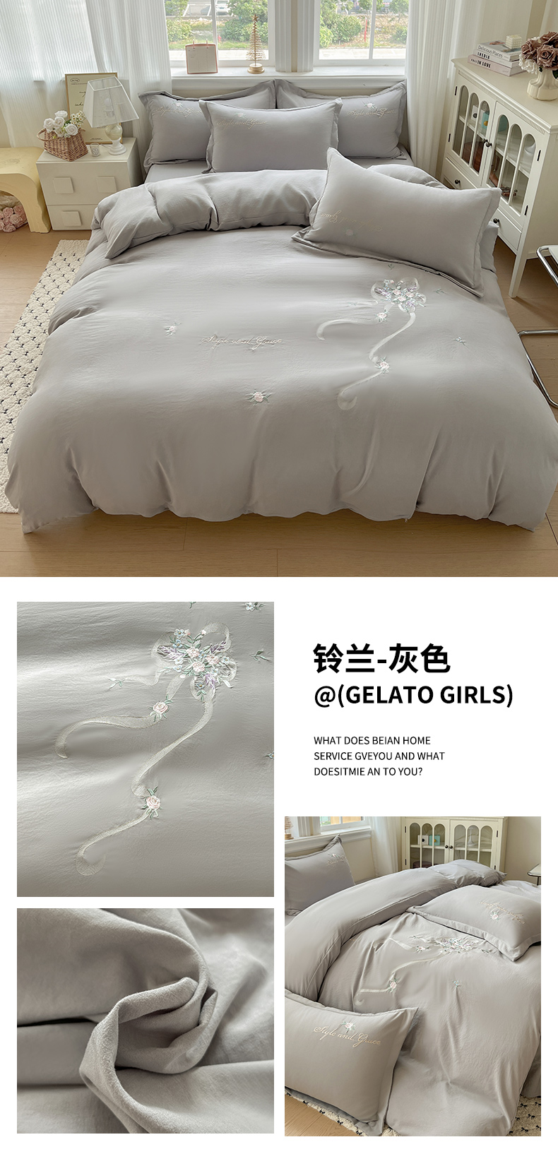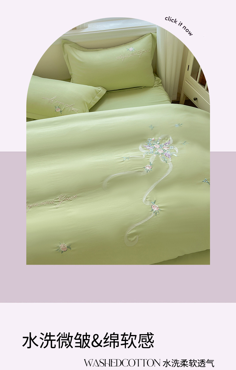 (总)文黛家居 2025新款高克重水洗棉绣花四件套-梦恋,梦恋-粉,梦恋-灰,梦恋-果绿,梦恋-浅蓝,梦恋-紫