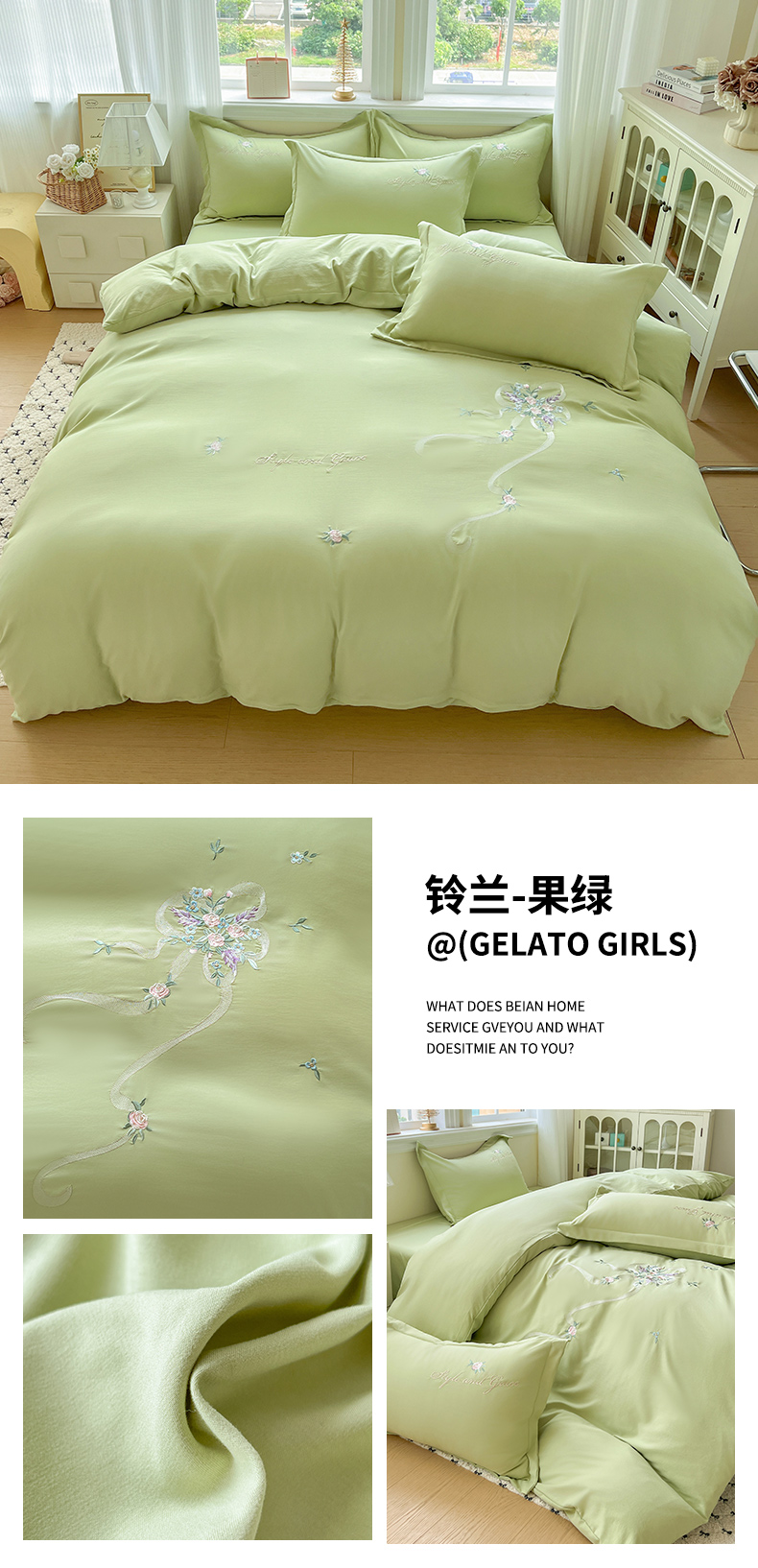 (总)文黛家居 2025新款高克重水洗棉绣花四件套-铃兰,铃兰-粉,铃兰-果绿,铃兰-灰,铃兰-浅蓝,铃兰-紫