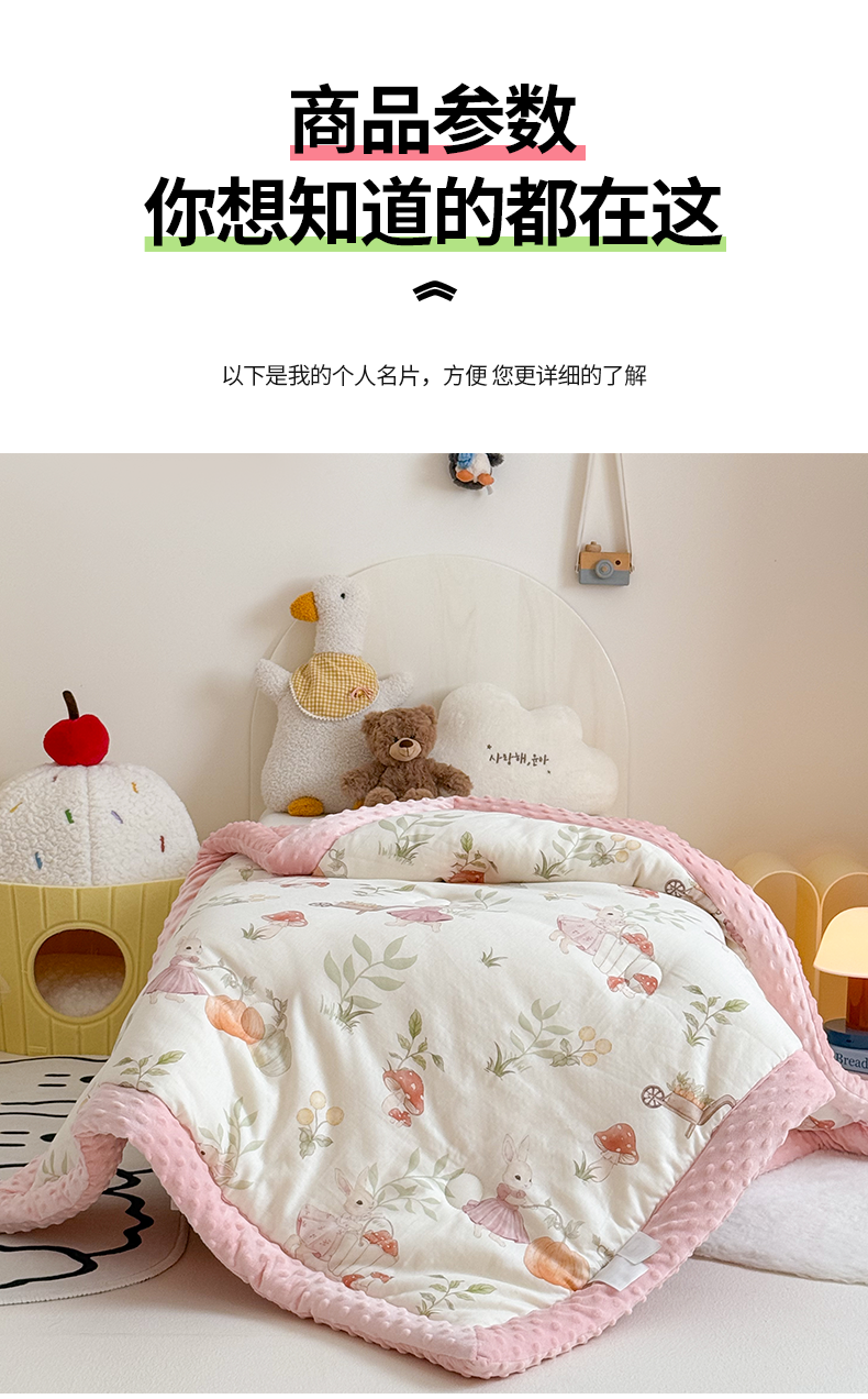 商品名称:嗨生活 2025新款森林系原创儿童全棉双层纱春秋被冬被幼儿园被子 田野兔子