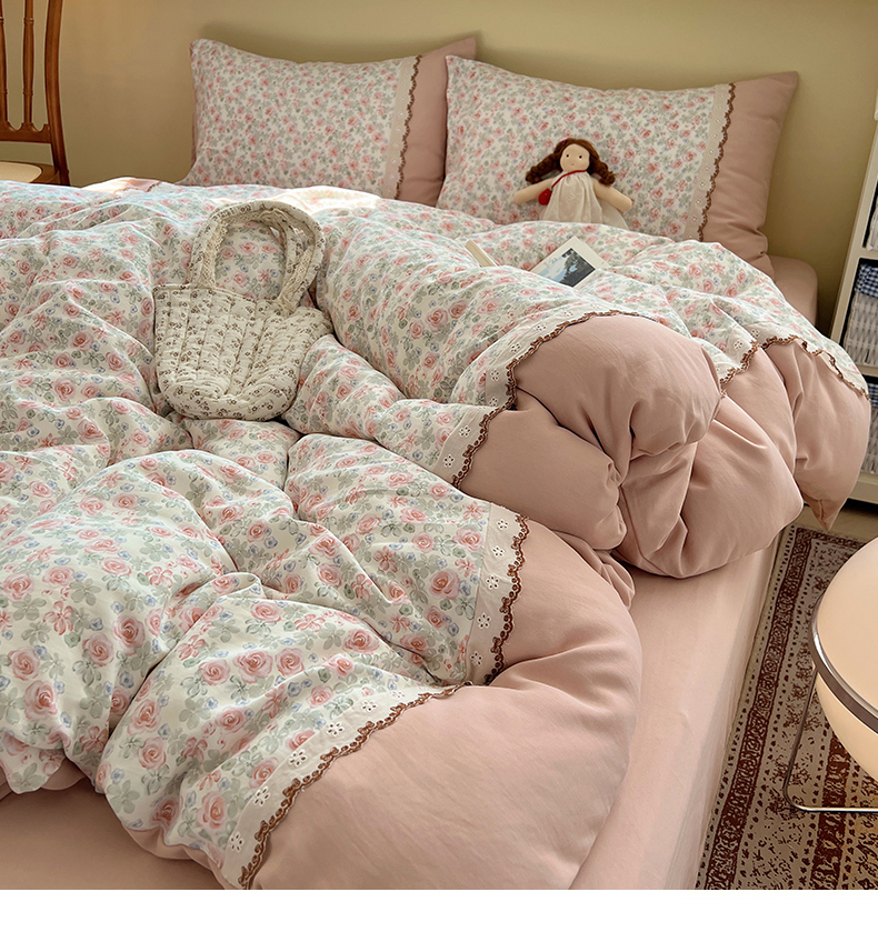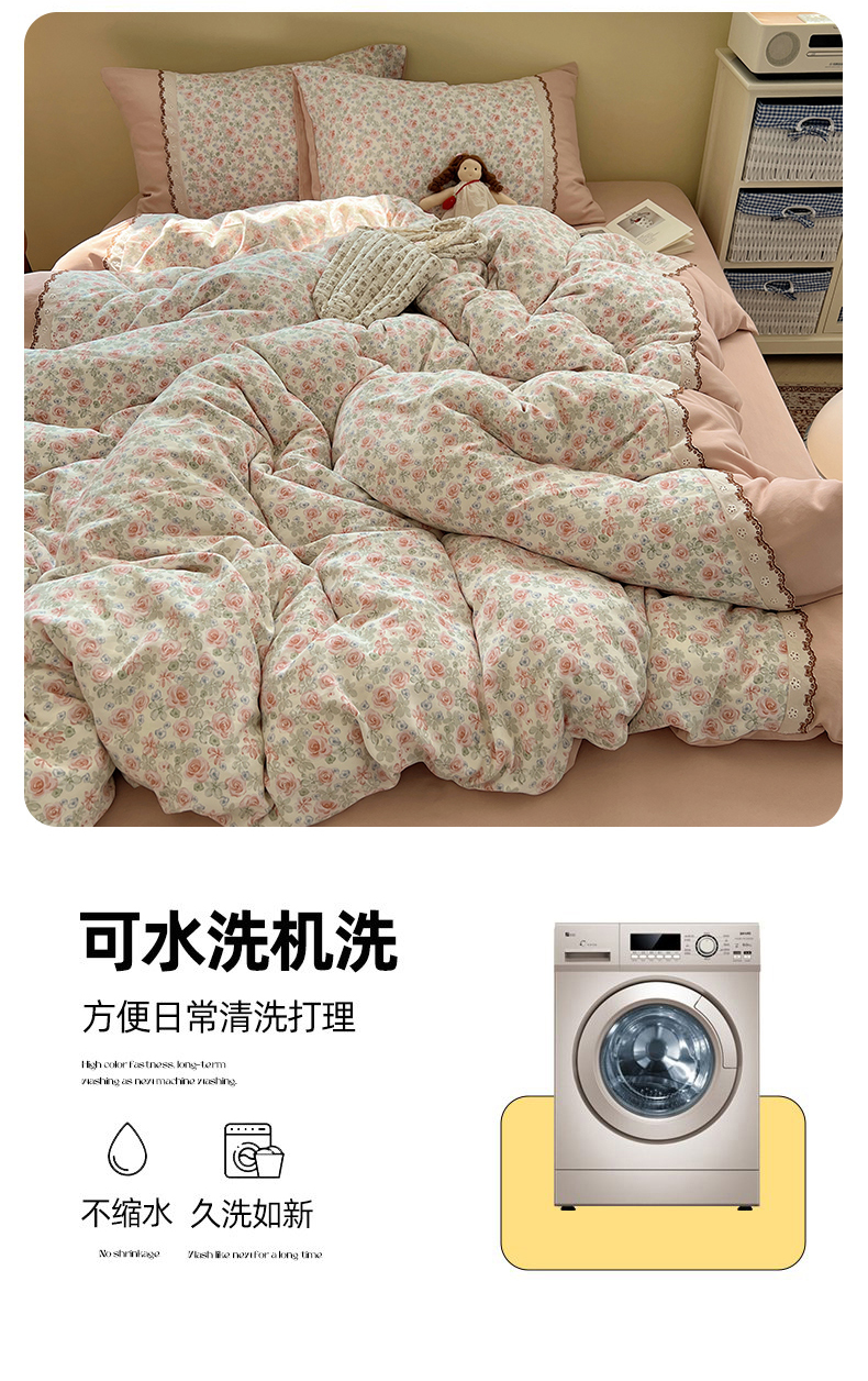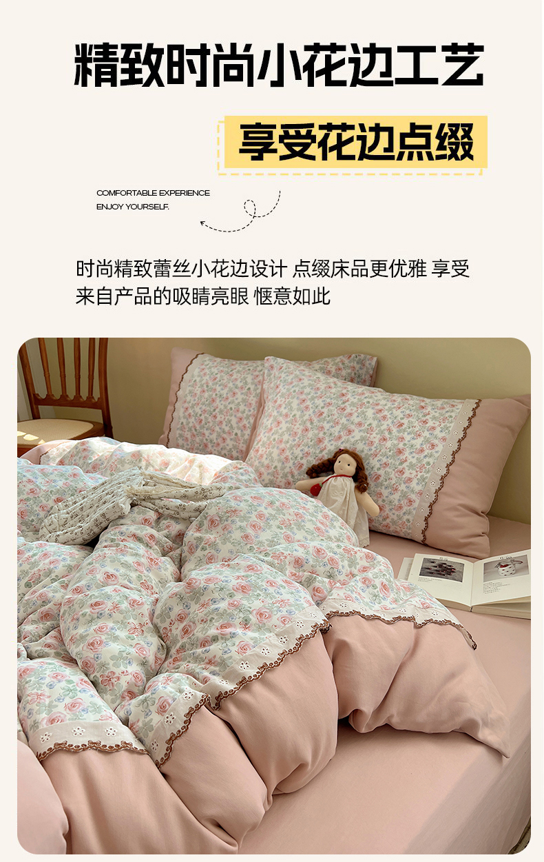 当前位置: 91家纺网 > 商品网购 > 床品套件 > 四件套 > 全棉普通四件套 > 优选 2025秋冬新品韩国小清新有氧提花人字纹双层纱全棉蕾丝花边加厚四件套 芊芊花海-小花边