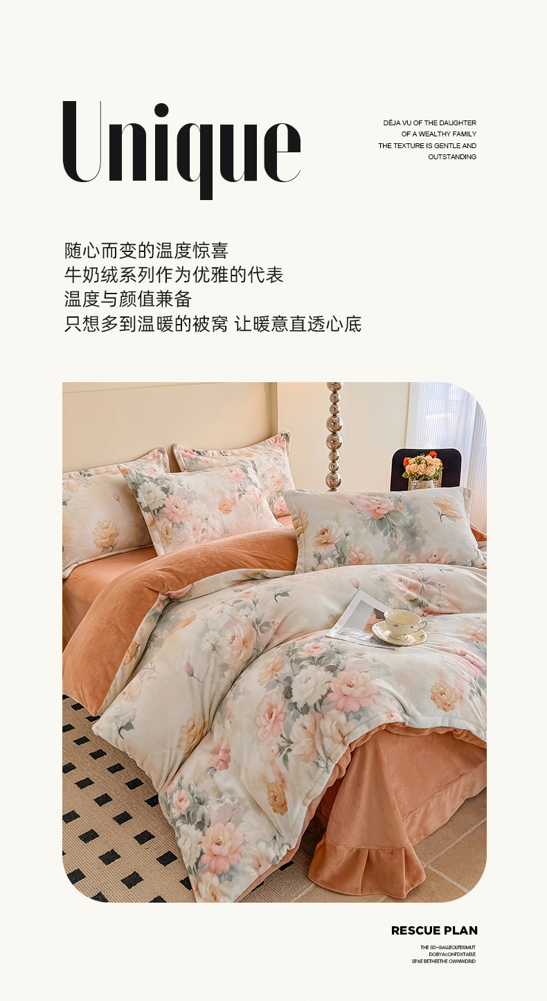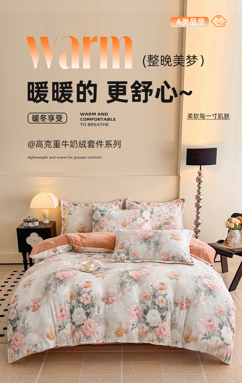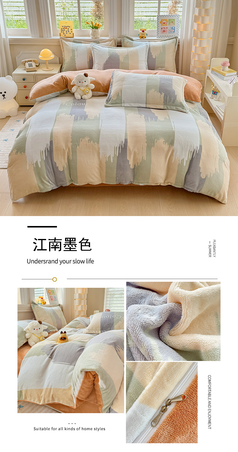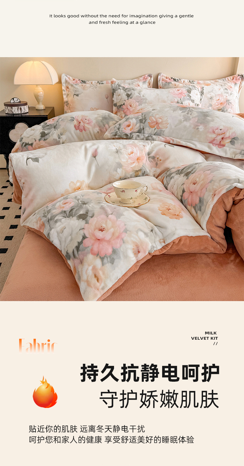 当前位置: 91家纺网 > 商品网购 > 床品套件 > 四件套 > 牛奶绒四件套 > 金盛纺 2025新款高克重牛奶绒印花系列四件套(可定制) 墨染