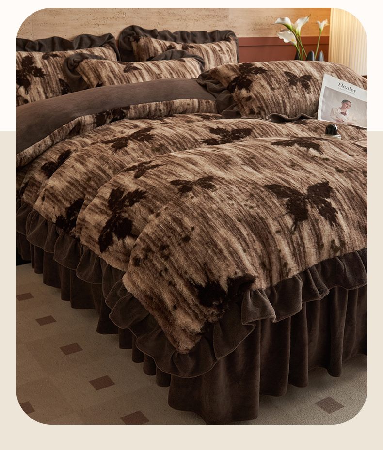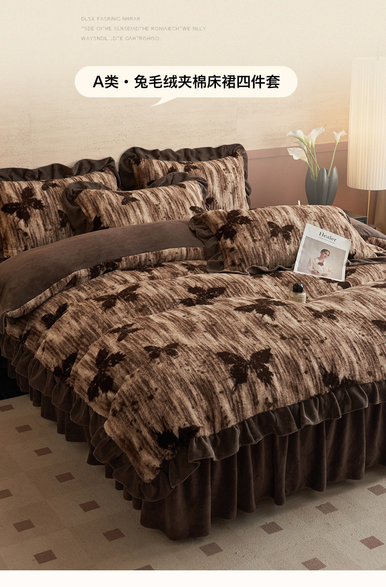 金鹰 2025新款A类兔毛绒夹棉床裙四件套加厚牛奶绒四件套 蝴蝶
