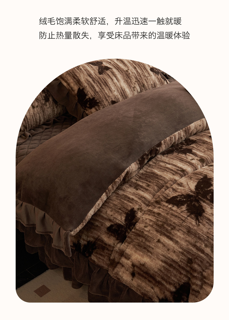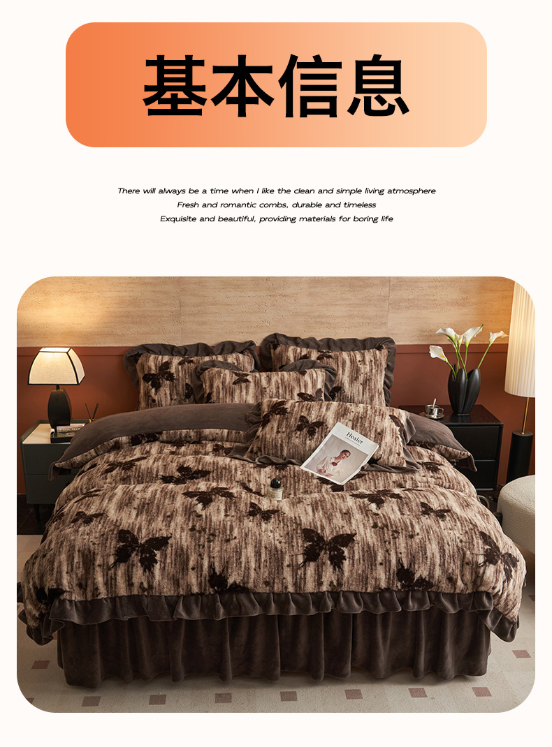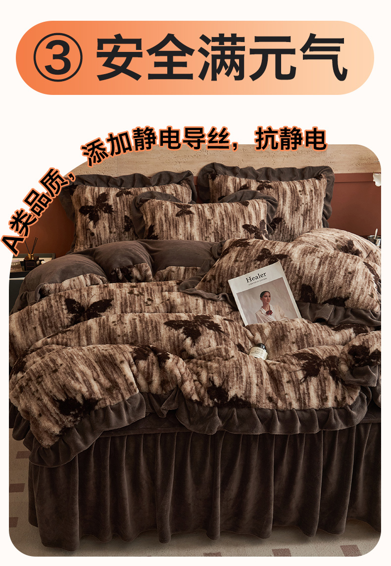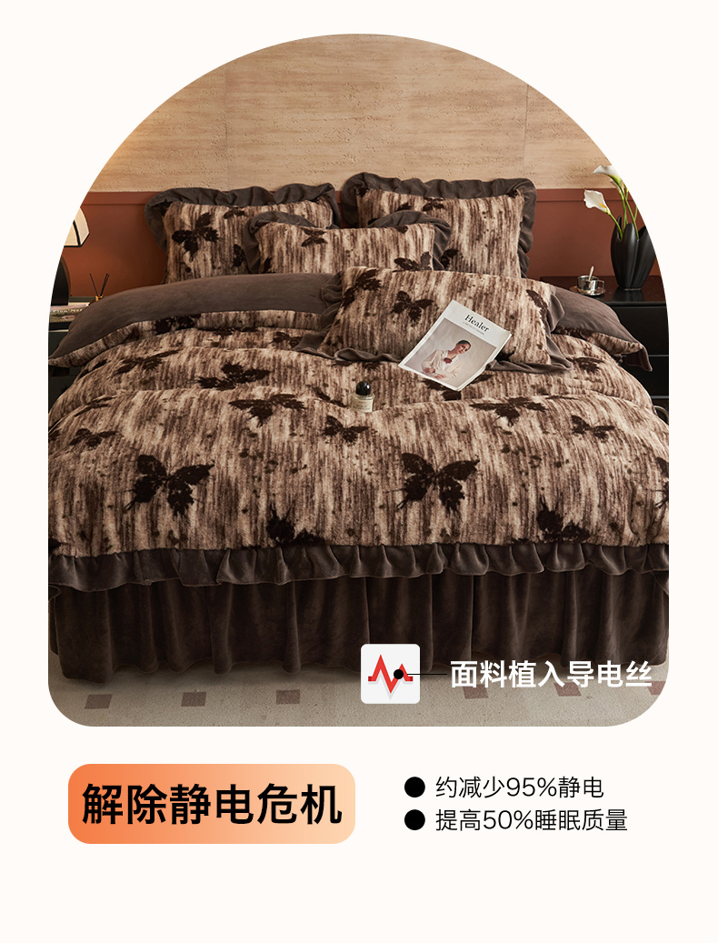 商品名称:金鹰 2025新款A类兔毛绒夹棉床裙四件套加厚牛奶绒四件套 蝴蝶