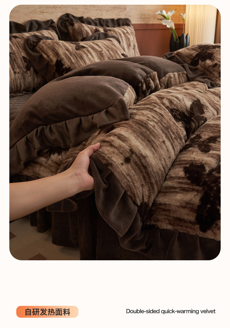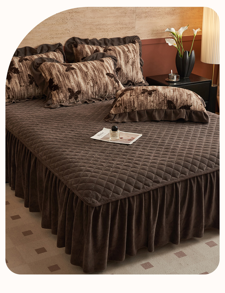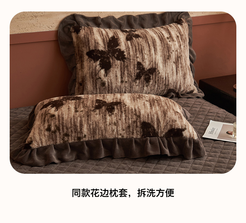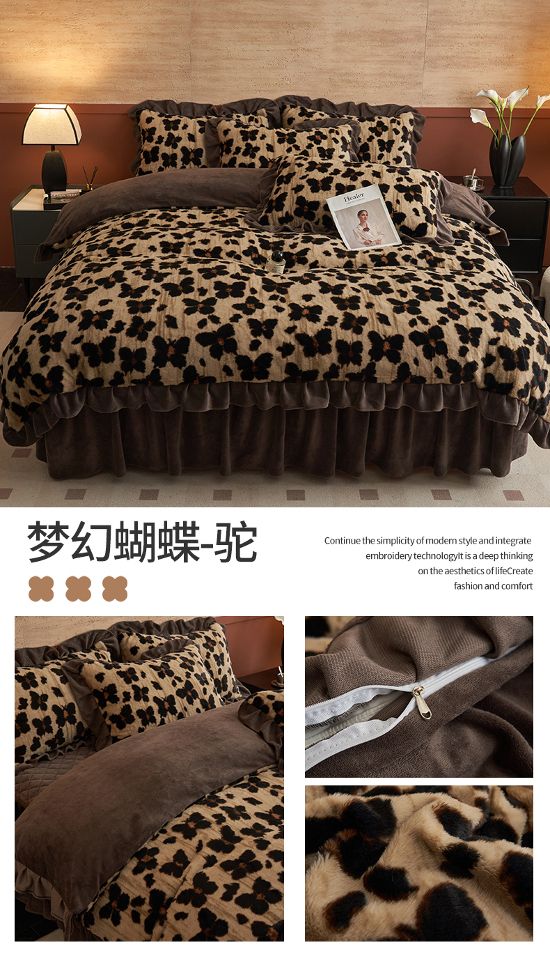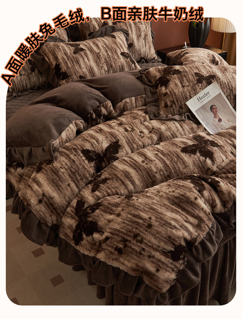 商品名称:金鹰 2025新款A类兔毛绒夹棉床裙四件套加厚牛奶绒四件套 蝴蝶