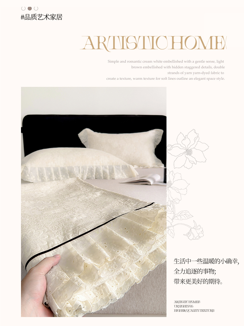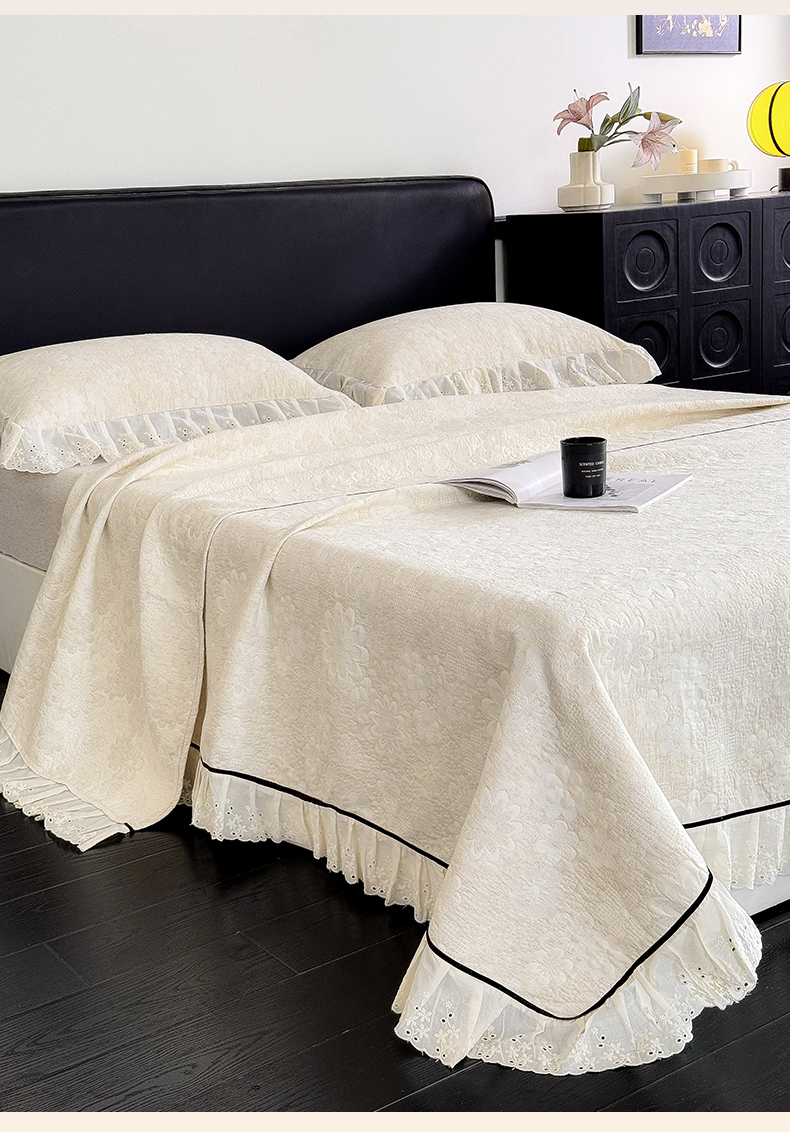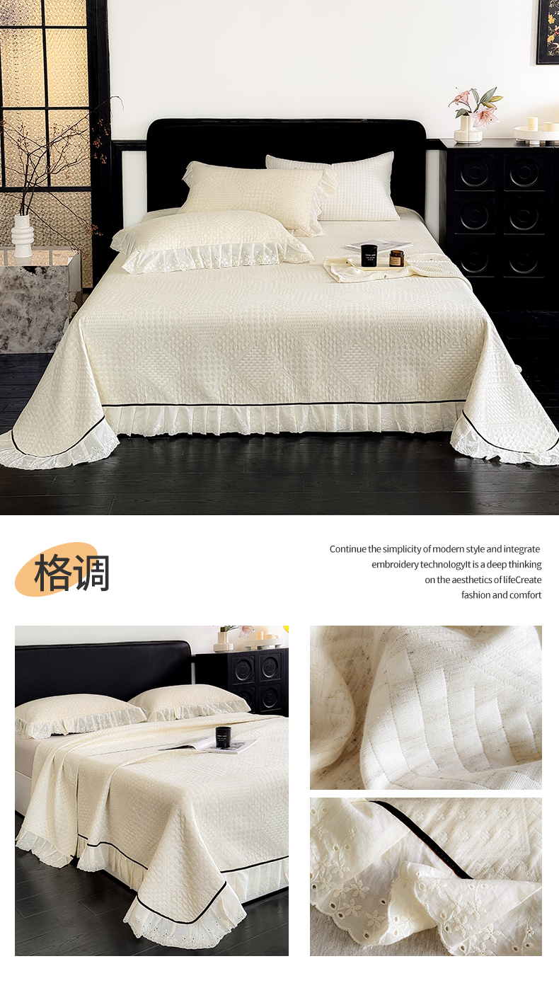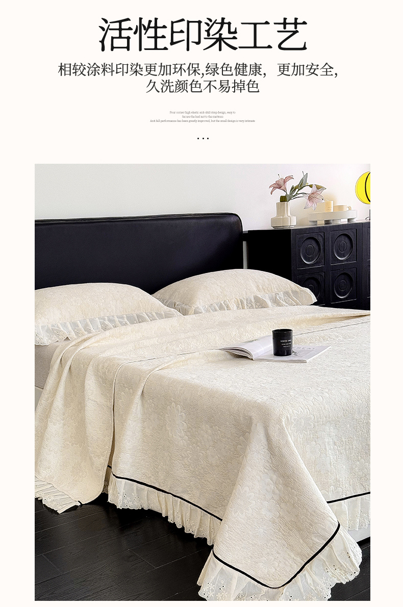 商品名称:金鹰 2025新款A类全棉花边棉麻空气层床盖 花边床盖-兰素