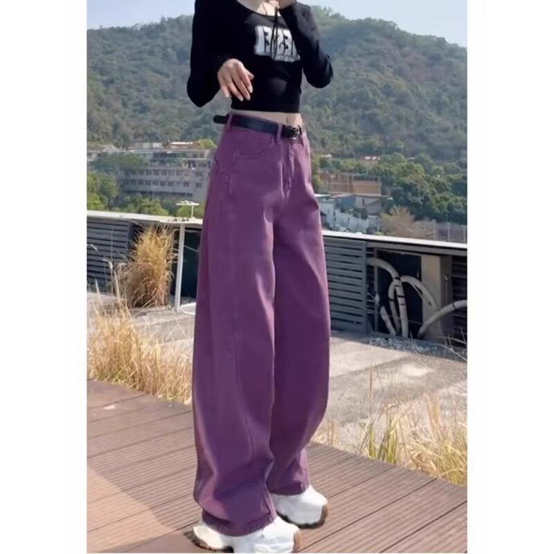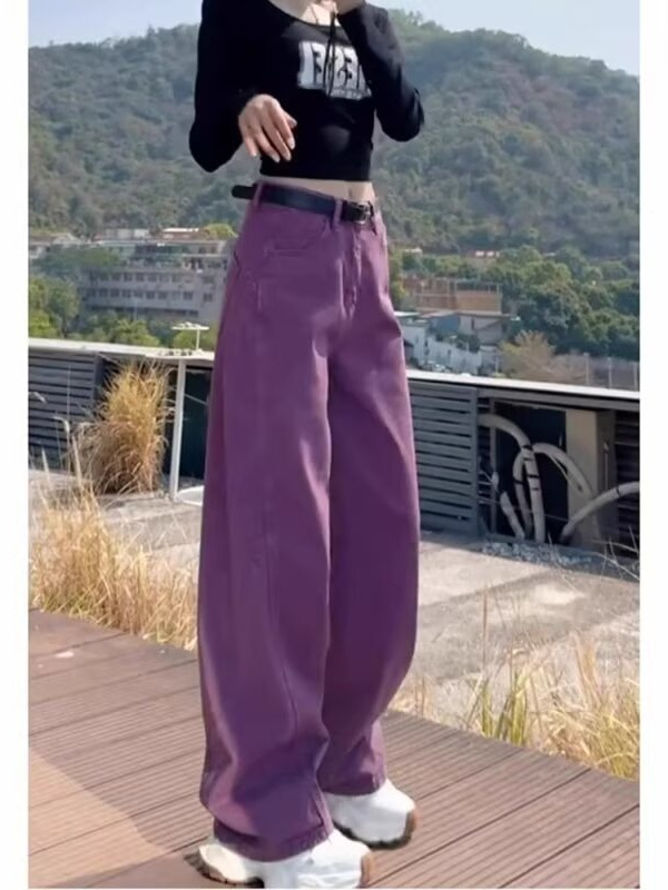 (总)洛兰沙家居馆【只代发】【只代发】 2025新款只代发美式复古紫色阔腿牛仔裤女春秋新款大码胖mm百搭宽松显瘦直筒裤子17