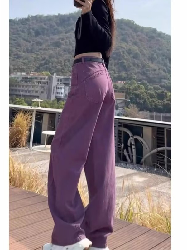 商品名称:(总)洛兰沙家居馆【只代发】【只代发】 2025新款只代发美式复古紫色阔腿牛仔裤女春秋新款大码胖mm百搭宽松显瘦直筒裤子17