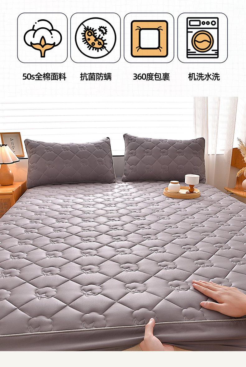 • 91家纺网 家纺一手货源 找家纺 金鹰 2025新款全棉50S夹棉抗菌防螨床笠加厚床笠席梦思保护套 浅兰