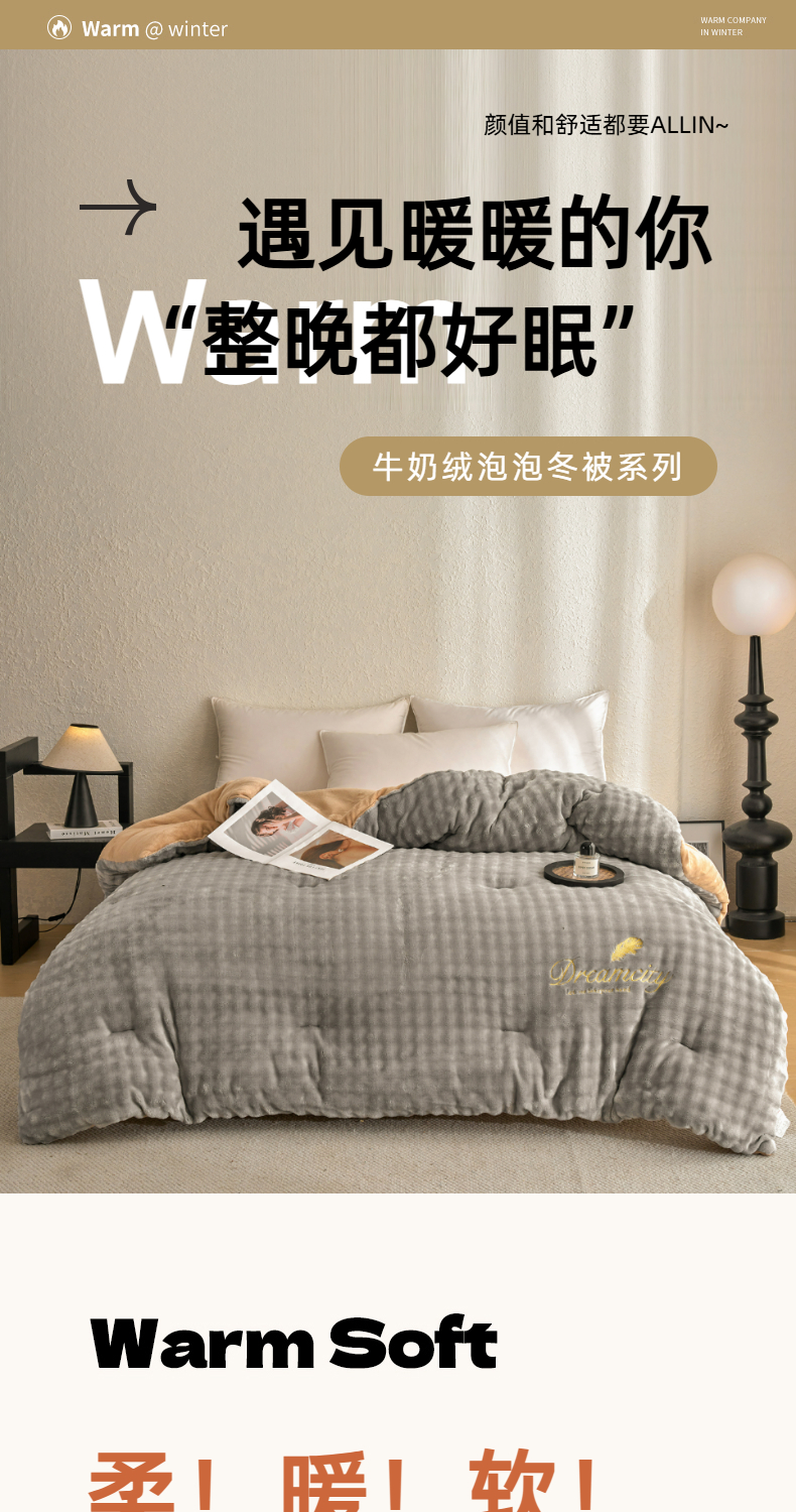 商品名称:(总)小叮当家纺仓储工厂店 2025新款兔毛牛奶绒加厚保暖冬被外贸跨境被子被芯