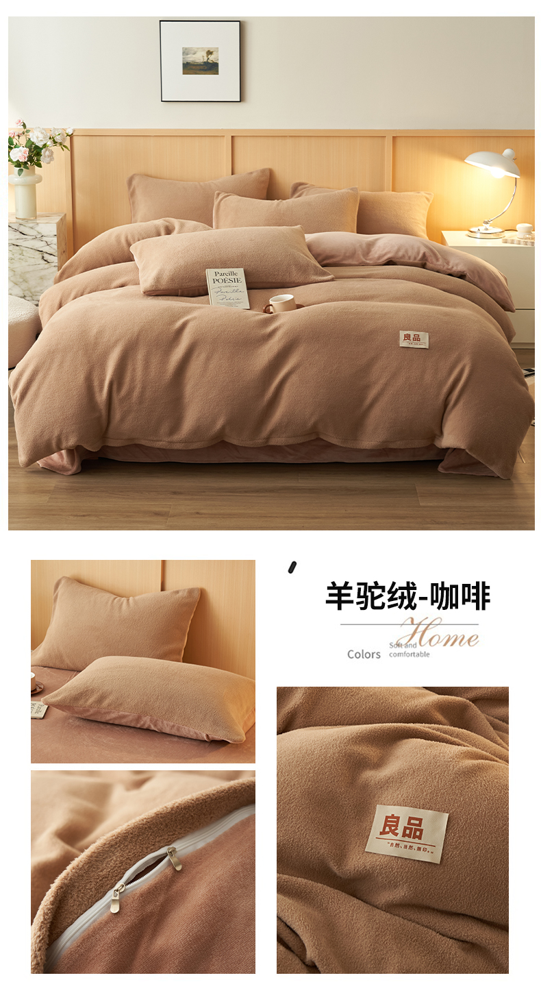 商品名称:金鹰 2025新款羊驼绒牛奶绒四件套保暖套件 羊驼绒-咖啡