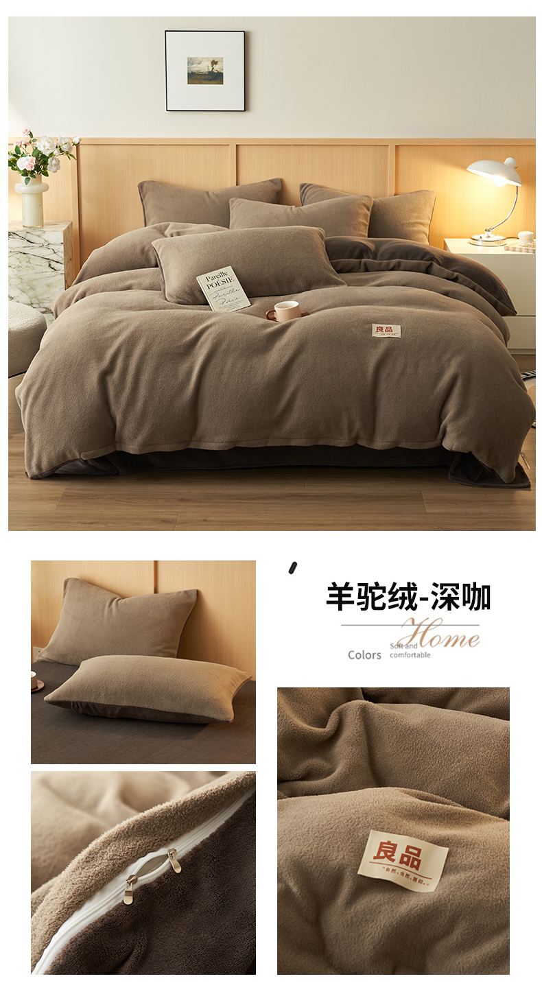 (总)金鹰 2025新款羊驼绒牛奶绒四件套加厚保暖绒套件被套,羊驼绒-浅灰,羊驼绒-深咖,羊驼绒-驼色,羊驼绒-粉色,羊驼绒-焦糖,羊驼绒-咖啡,羊驼绒-蓝色,羊驼绒-奶白