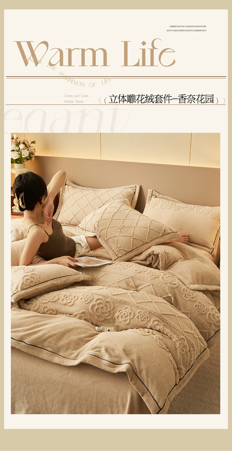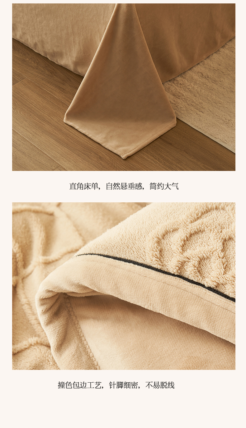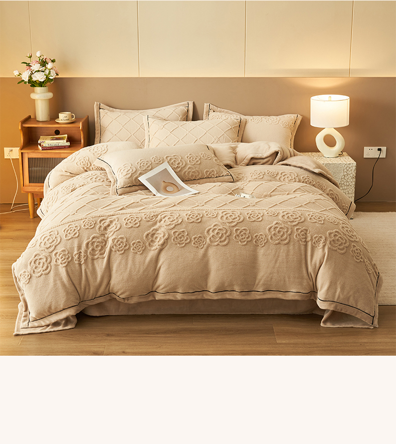 金鹰 2025新款提花绒牛奶绒四件套 香奈花园-驼