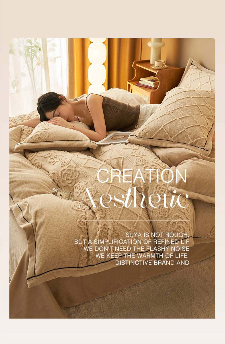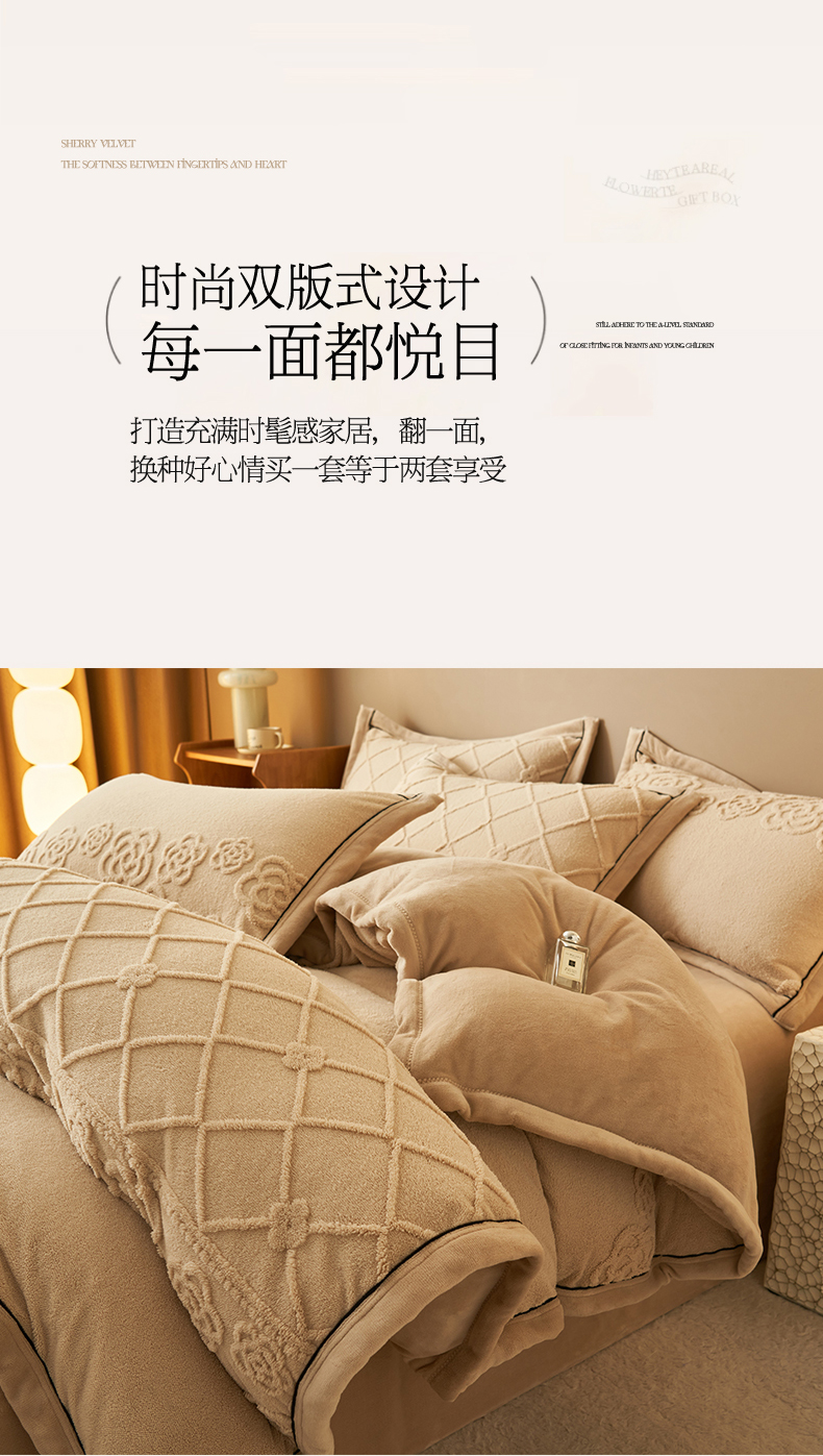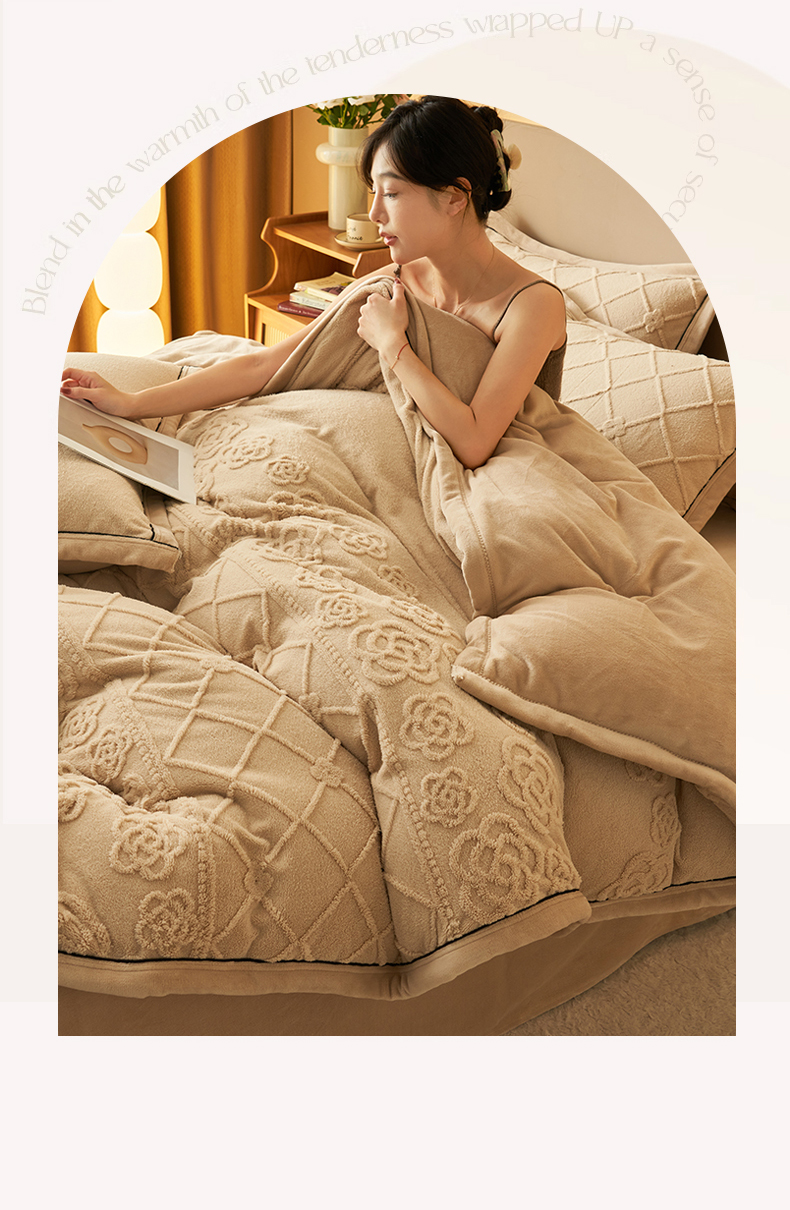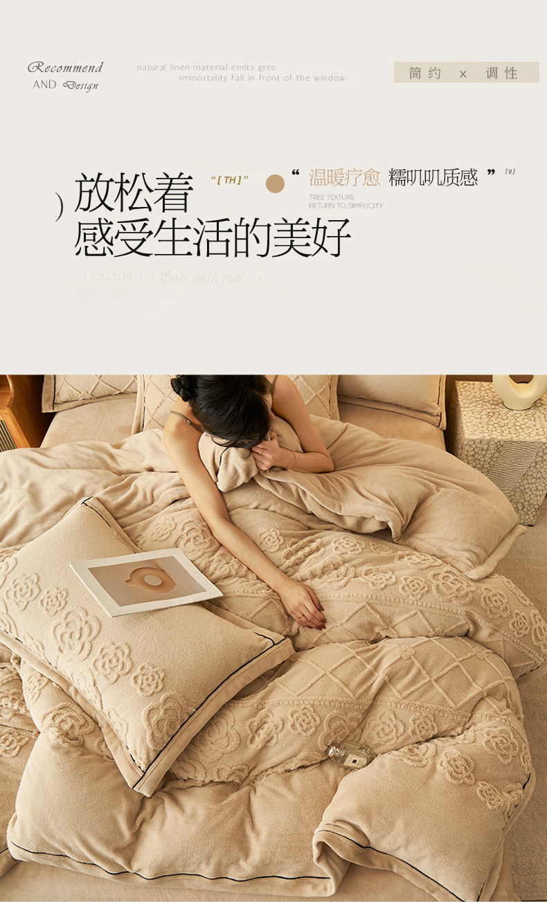 (总)金鹰 2025新款A类雕花牛奶绒烂花兔毛包边四件套,羽毛,波澜壮阔,繁花,蝴蝶梦,简爱,兰花,玫瑰物语,梦幻森林,清晨玫瑰,羽叶,仲夏晨歌