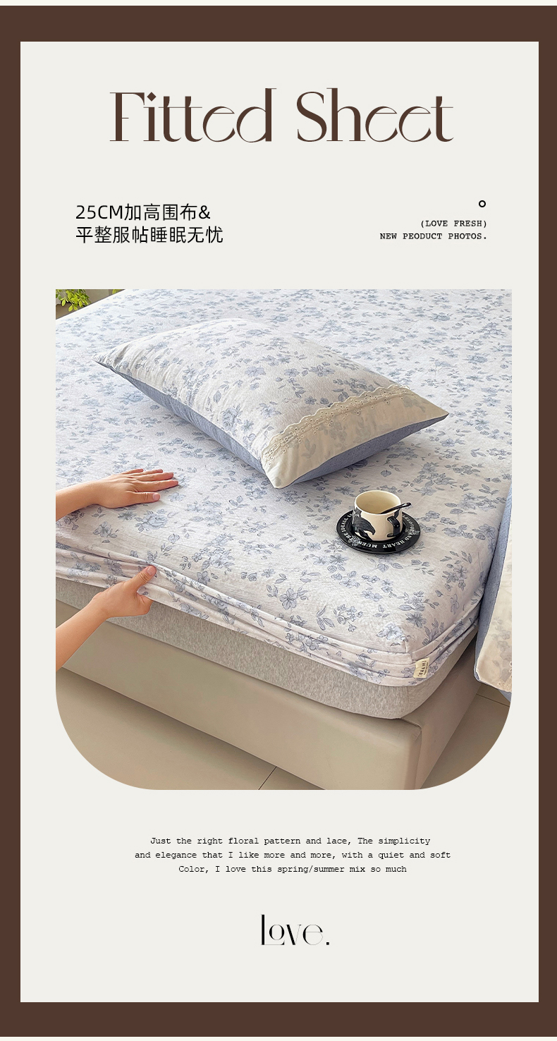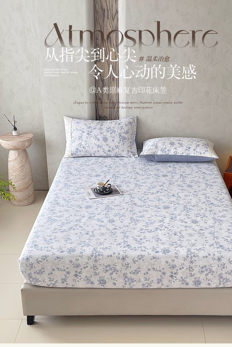 丝芙妮家居(原乐视家纺) 2025新款全棉纯棉蕾丝花边原麻单品床笠单件床笠 庄生晓梦