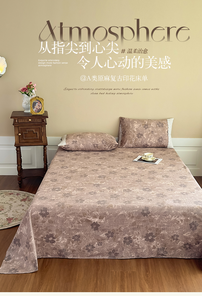丝芙妮家居(原乐视家纺) 2025新款全棉纯棉蕾丝花边原麻单件床单单品床单 陌清香