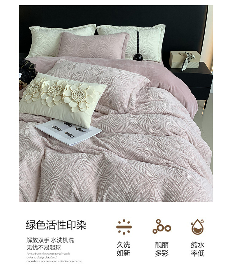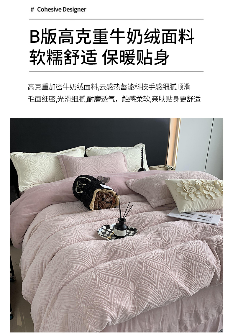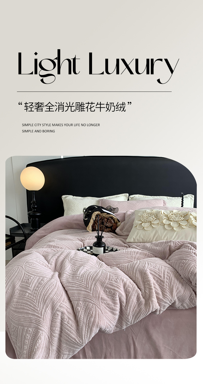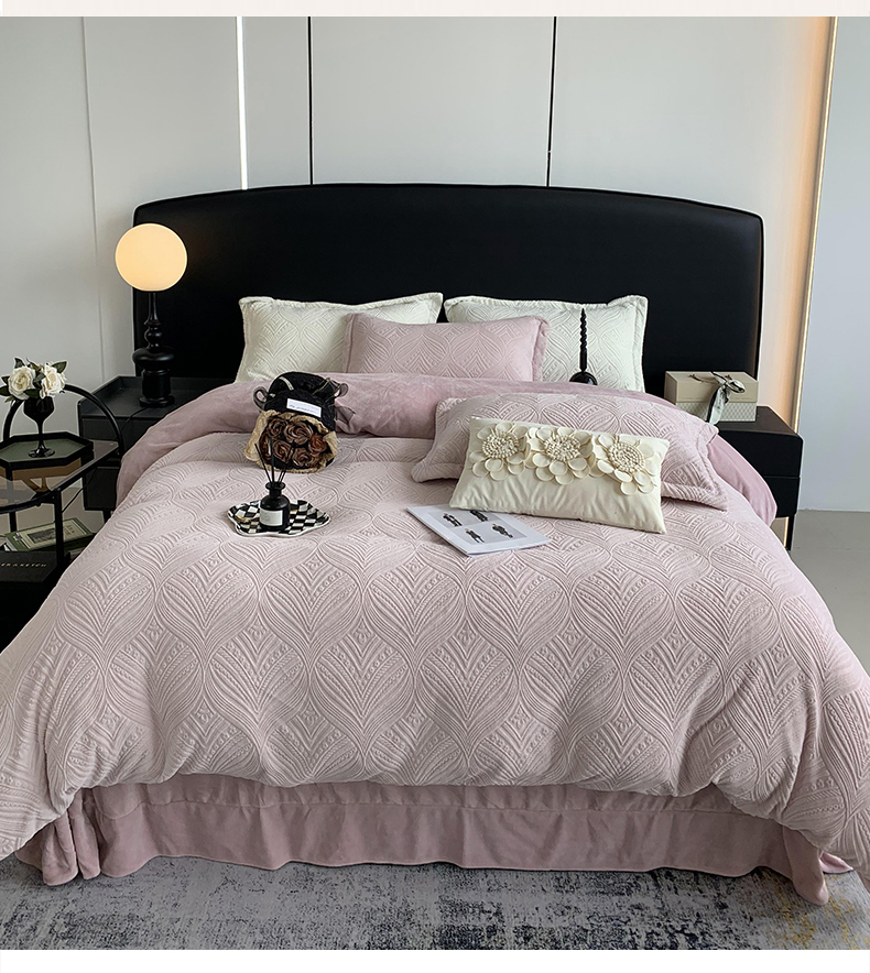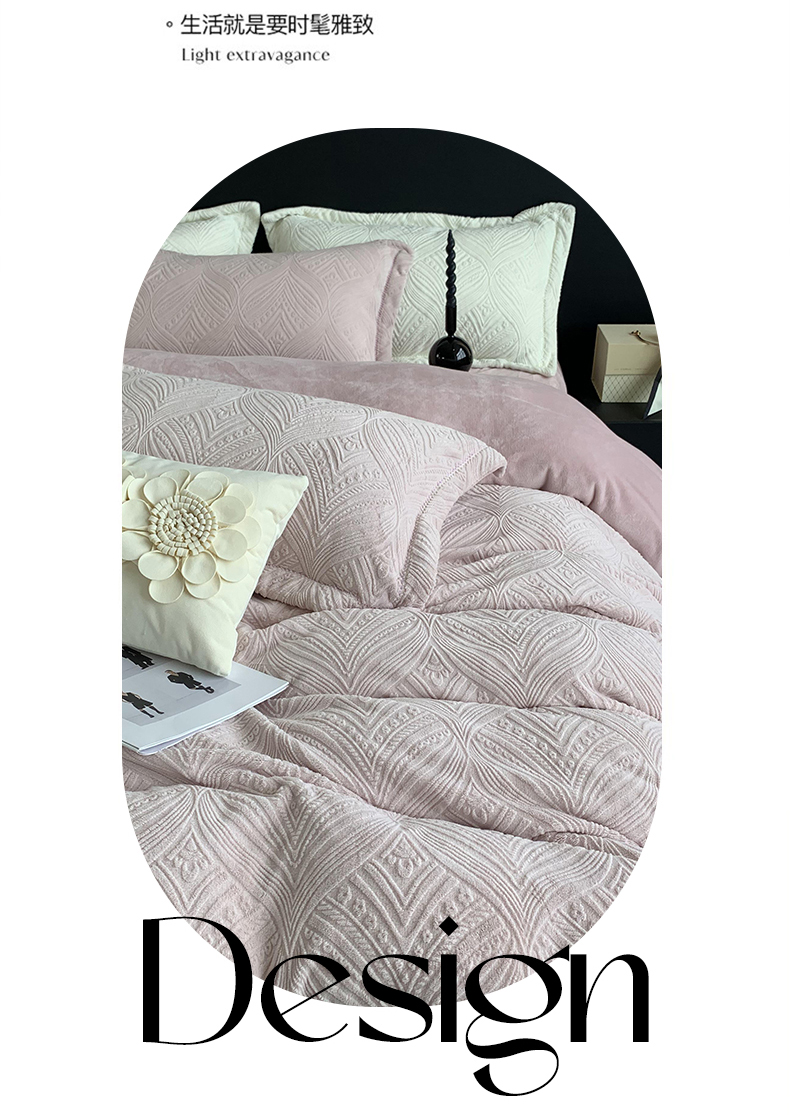 奈萝家纺 2025新款雕花绒高克重牛奶绒四件套-流年系列 流年肉桂粉