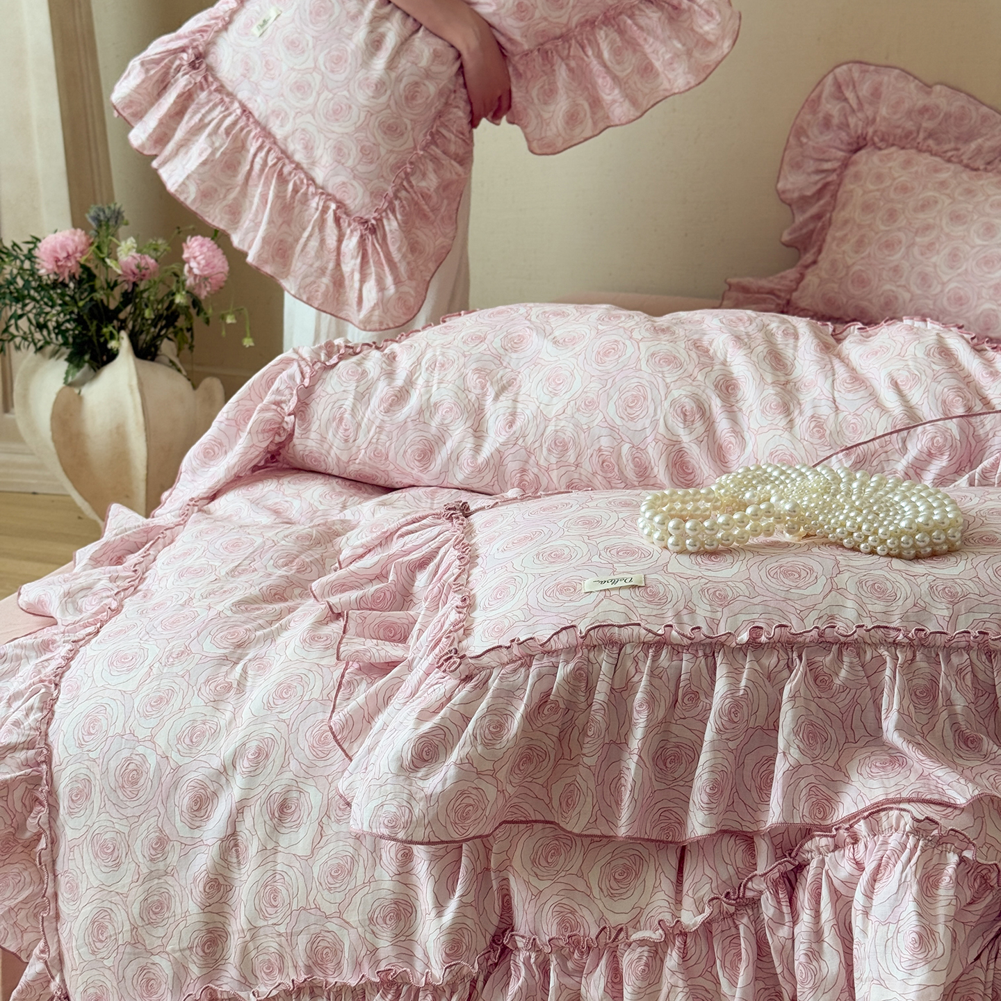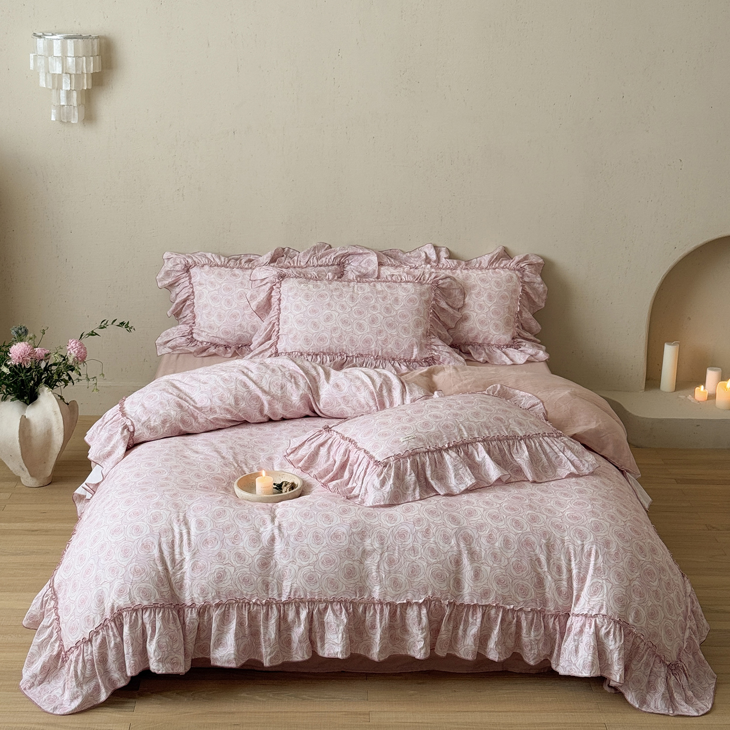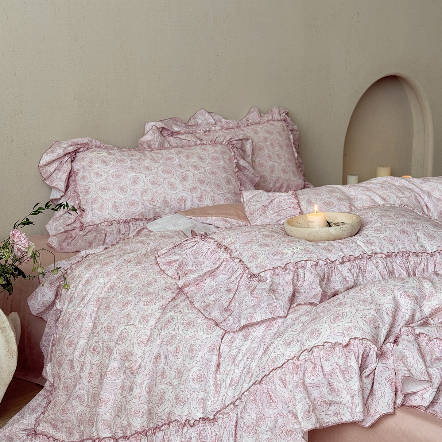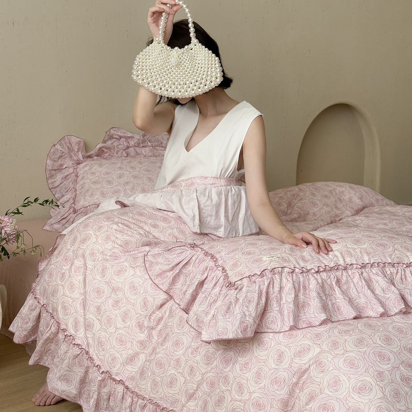 (总)多乐娜 2025新款轻法式纯棉双层纱韩版印花花边四件套工艺款ykk拉链配收纳包-斯嘉丽(会员-20)控价299/319起(券后!!)务必控价谢谢配合