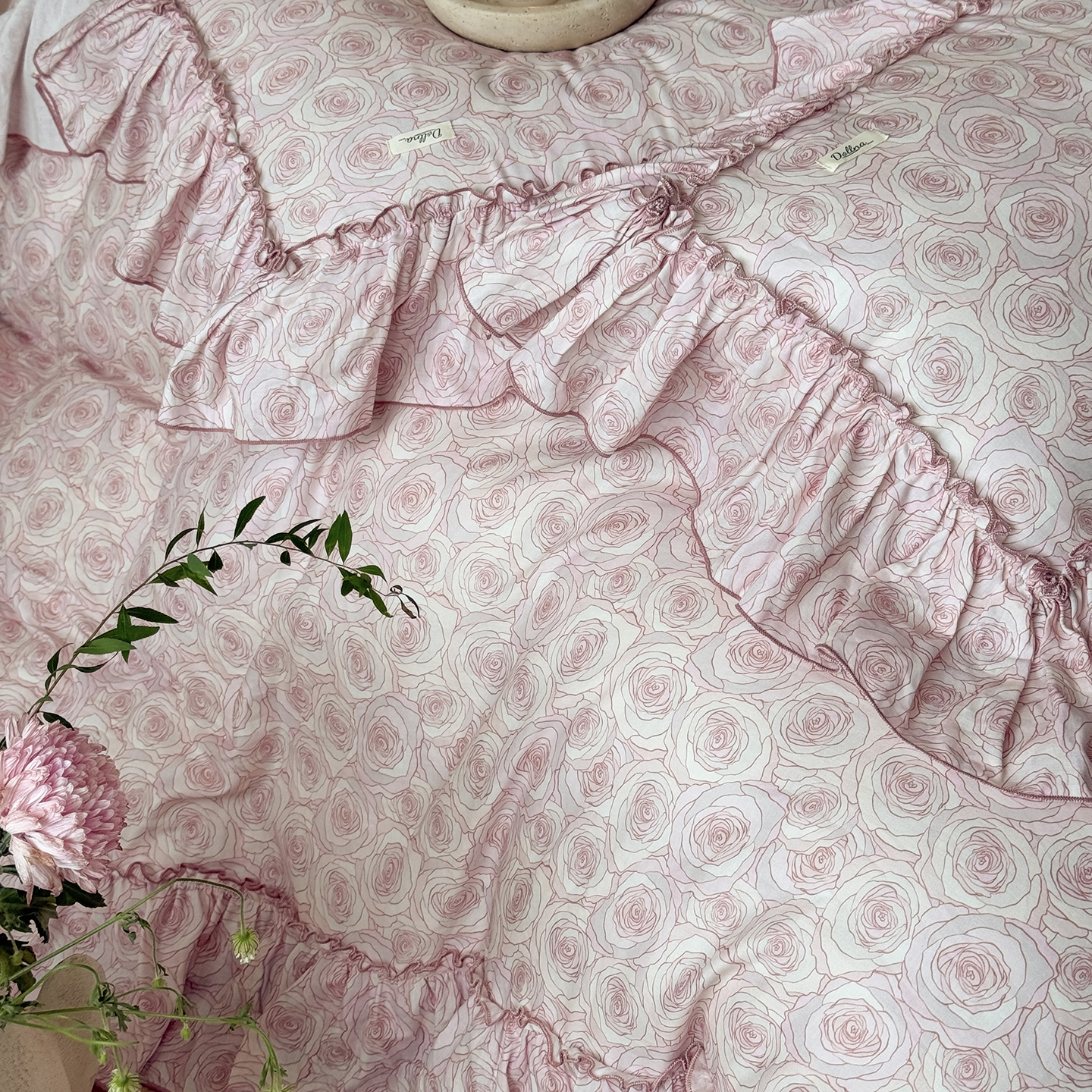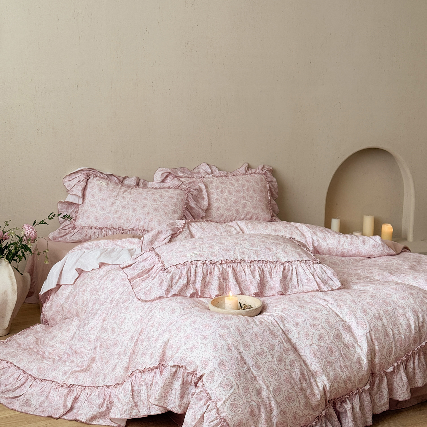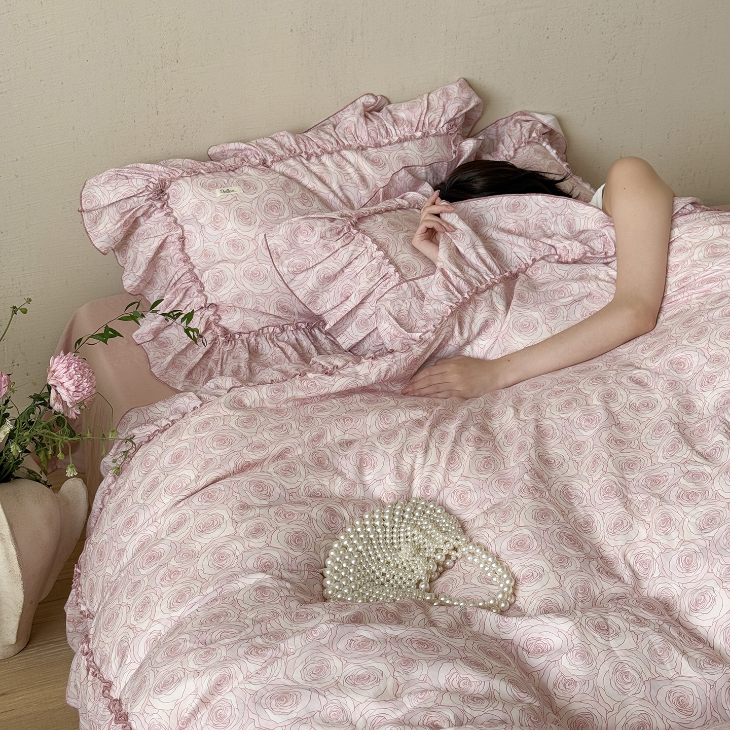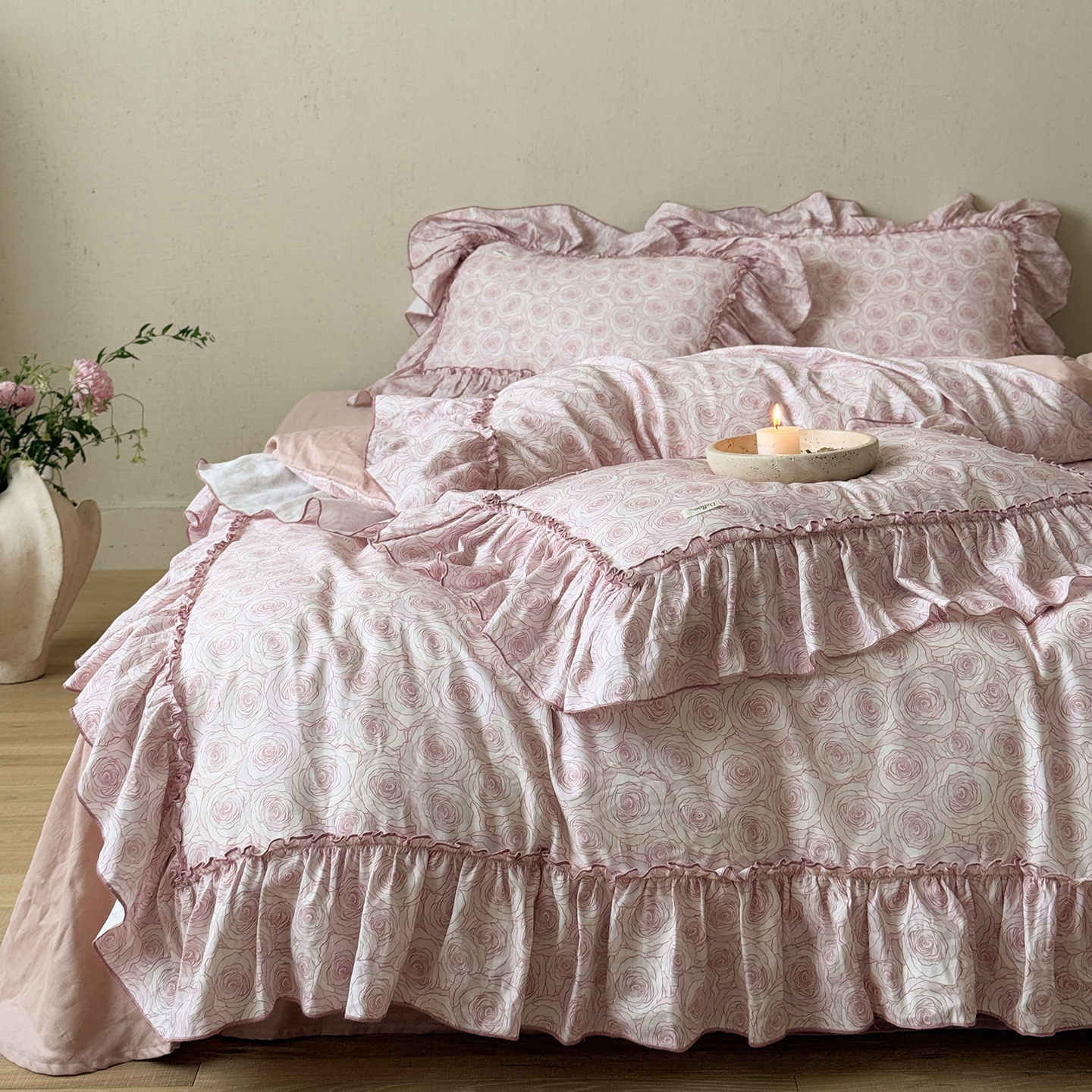 (总)多乐娜 2025新款轻法式纯棉双层纱韩版印花花边四件套工艺款ykk拉链配收纳包-斯嘉丽(会员-20)控价299/319起(券后!!)务必控价谢谢配合