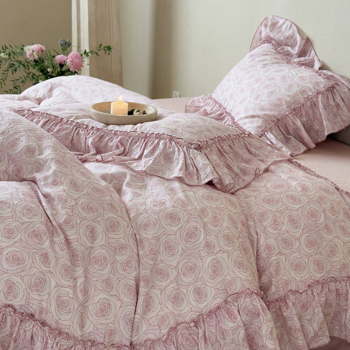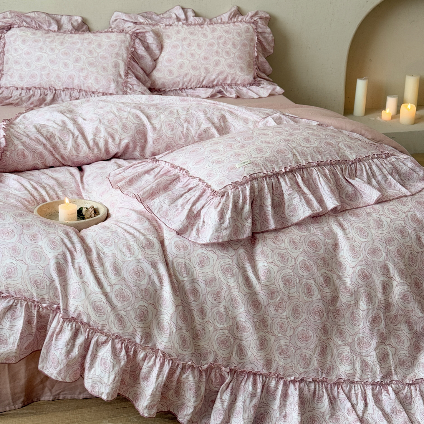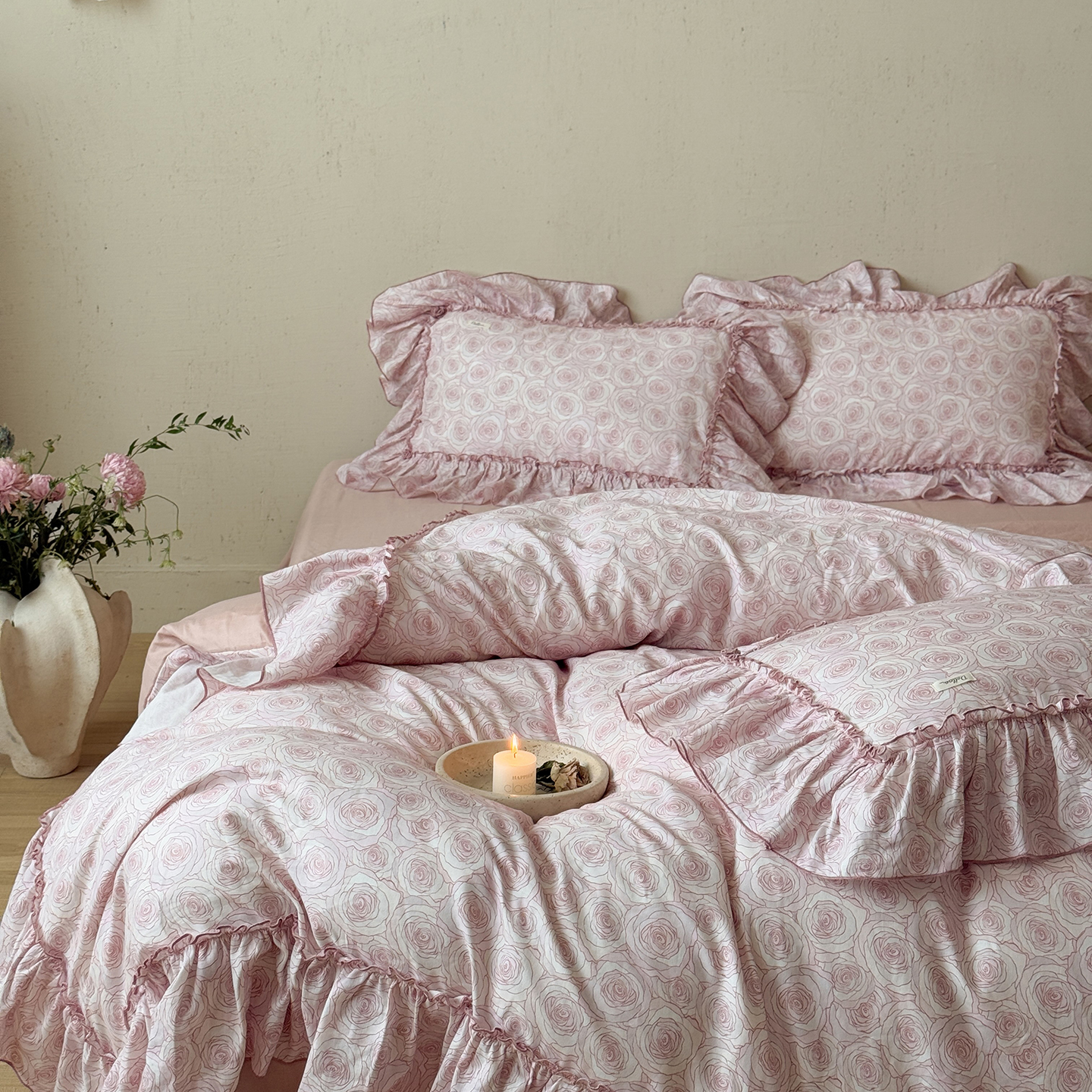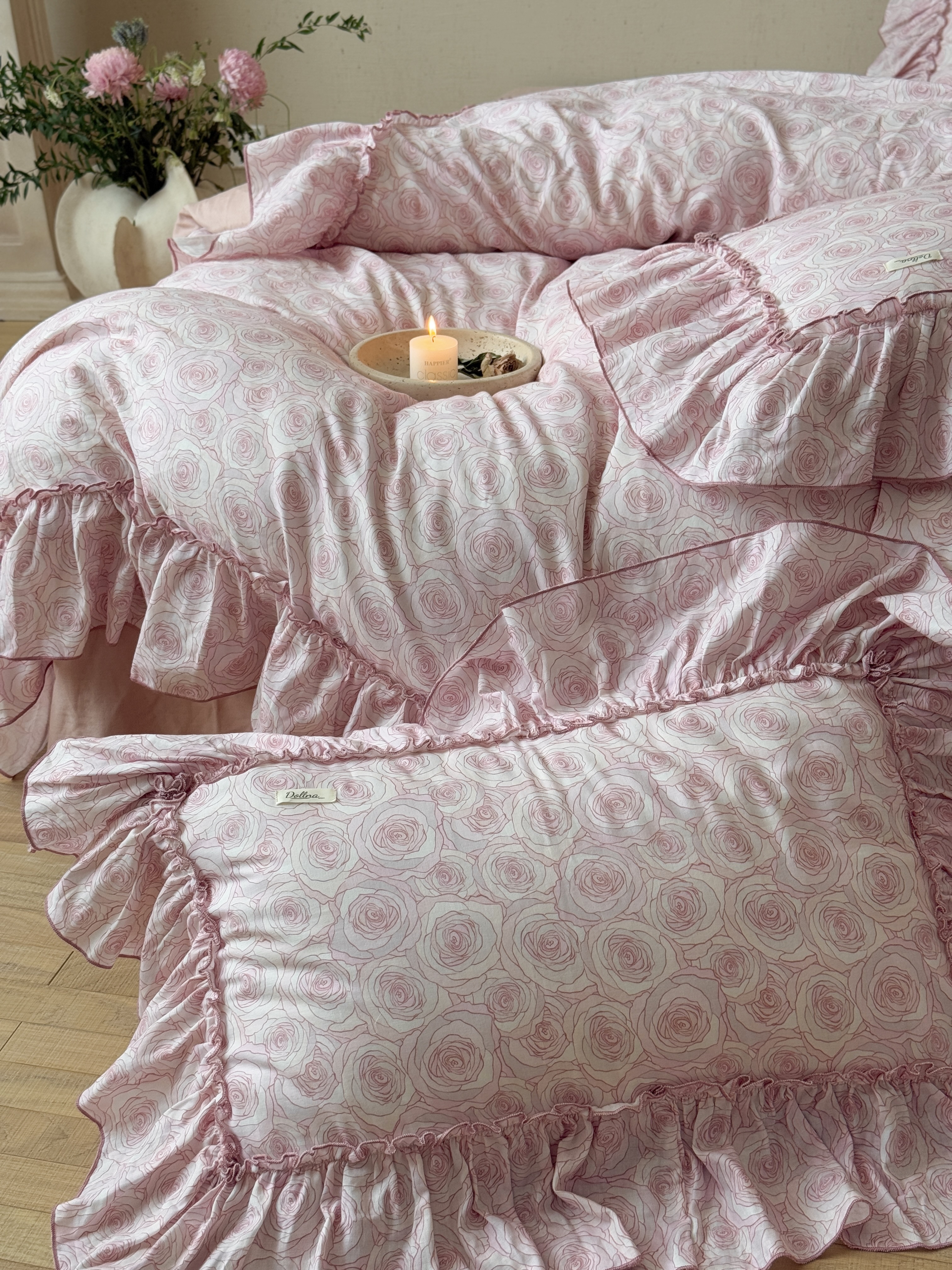 (总)多乐娜 2025新款轻法式纯棉双层纱韩版印花花边四件套工艺款ykk拉链配收纳包-斯嘉丽(会员-20)控价299/319起(券后!!)务必控价谢谢配合