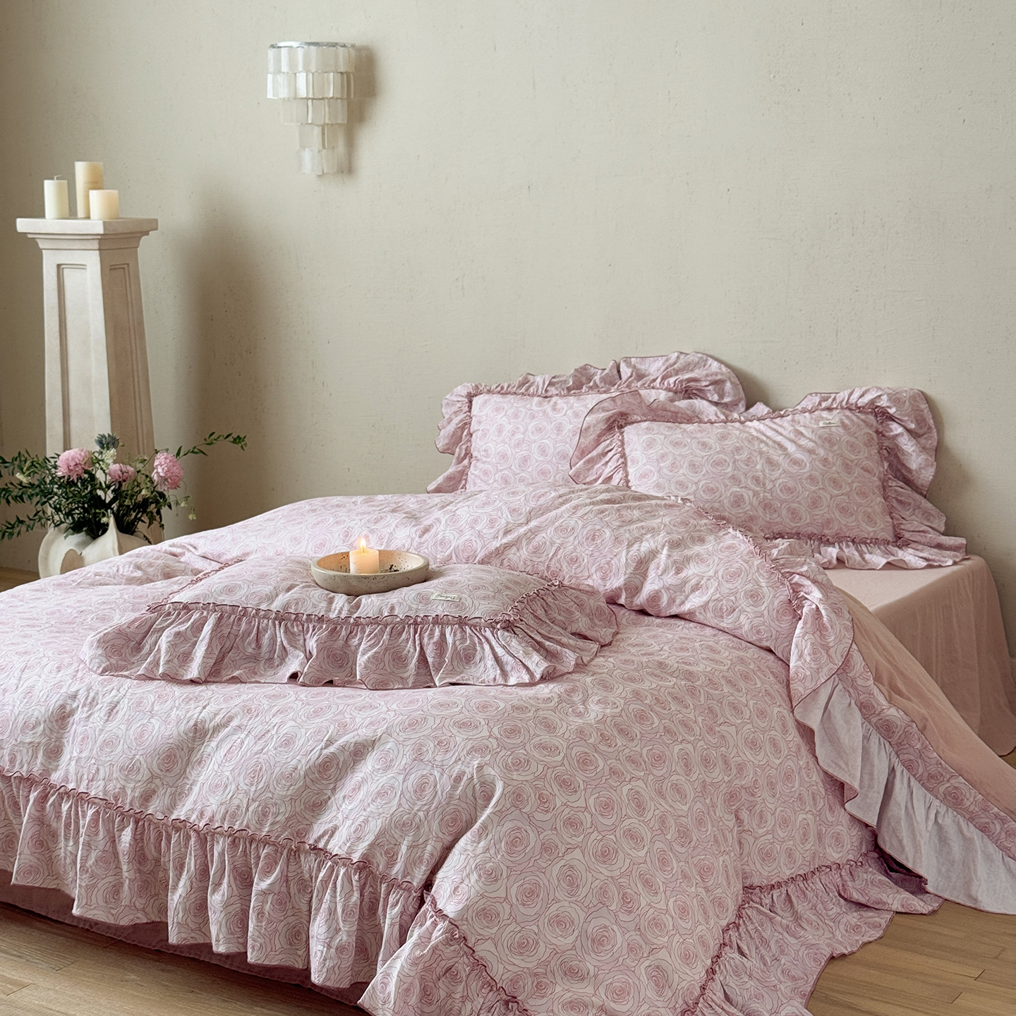 商品名称:(总)多乐娜 2025新款轻法式纯棉双层纱韩版印花花边四件套工艺款ykk拉链配收纳包-斯嘉丽(会员-20)控价299/319起(券后!!)务必控价谢谢配合