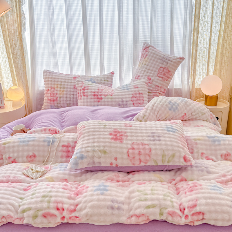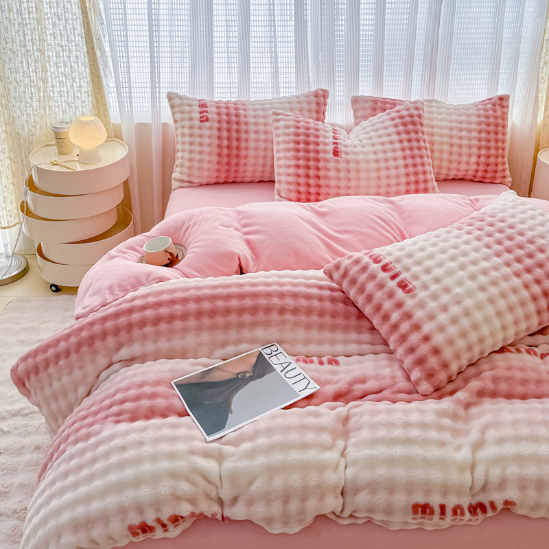 (总)(买家秀 爆款不断货)A类母婴级高克重獭兔绒四件套牛奶绒四件套牛奶绒四件套纯色韩版荷叶边兔毛绒四件套,泡泡粉玉,泡泡-滨海绿,泡泡-摩登卡,泡泡高级灰,泡泡卡其,泡泡奶白
