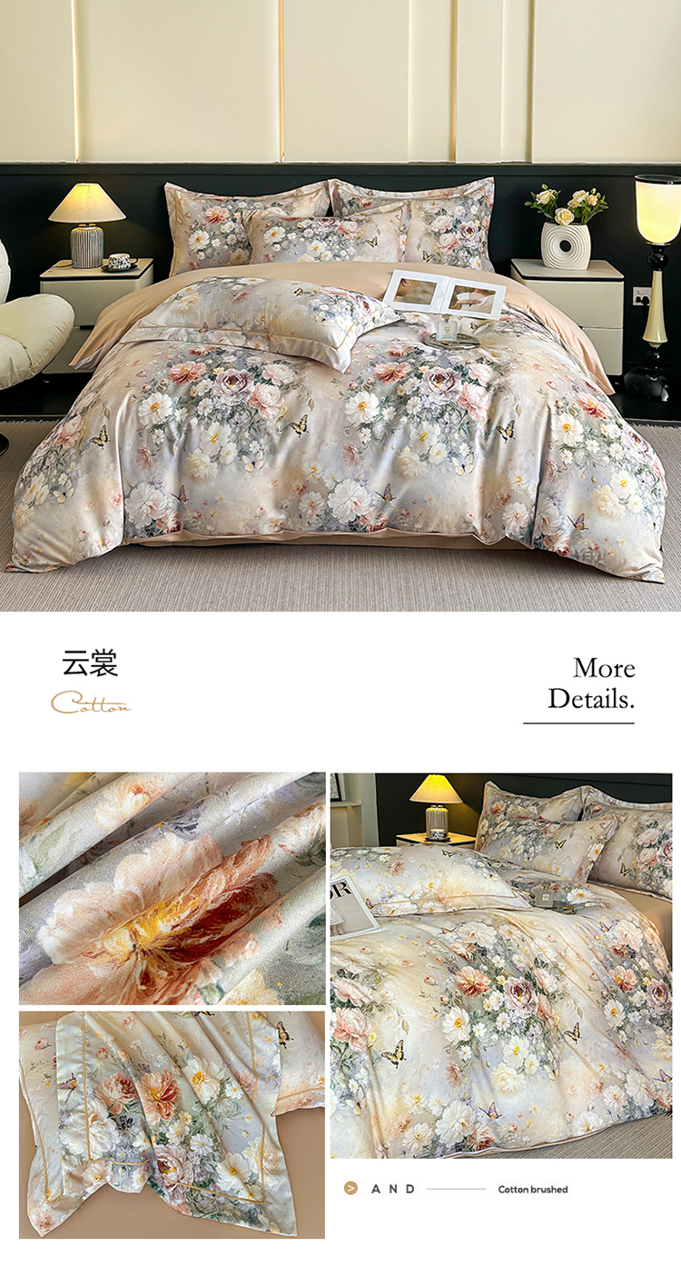 商品名称:棠颂家纺 2025新款A类锦棉缎陶瓷磨毛数码印花四件套(礼盒款) 云裳