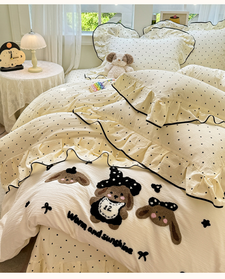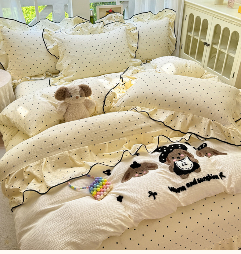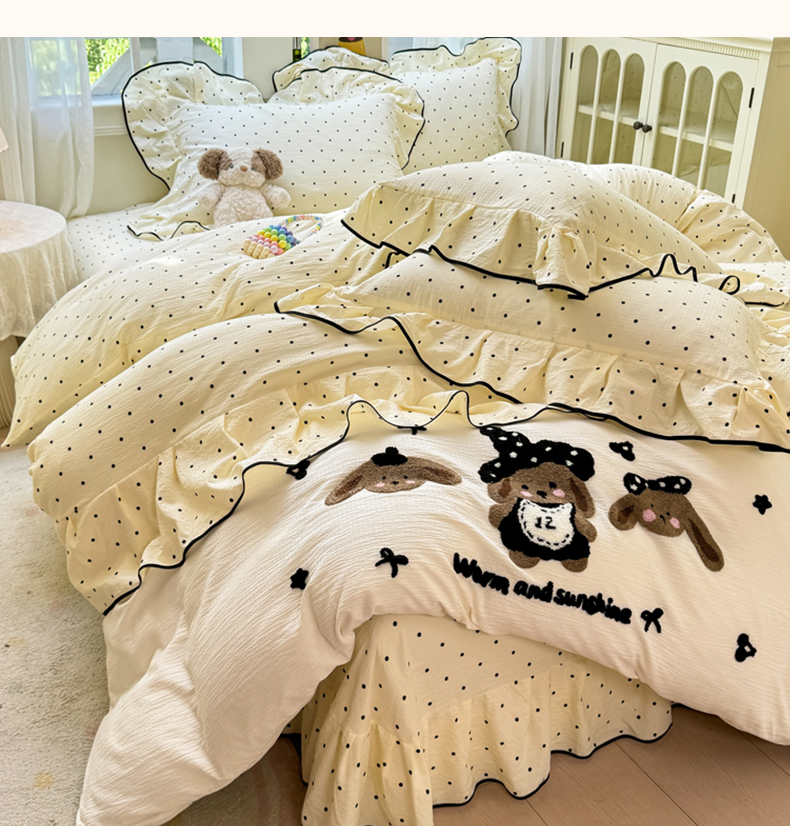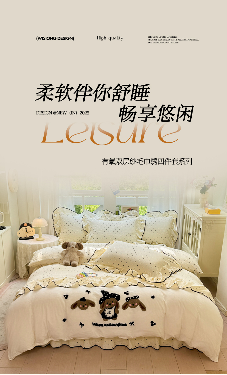 商品名称:麋兔 2025新款双层纱毛巾绣花边四件套 巴克兔