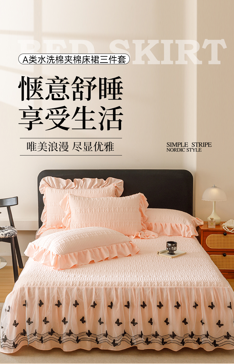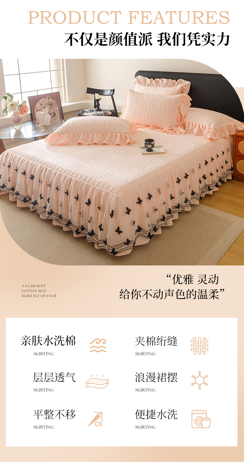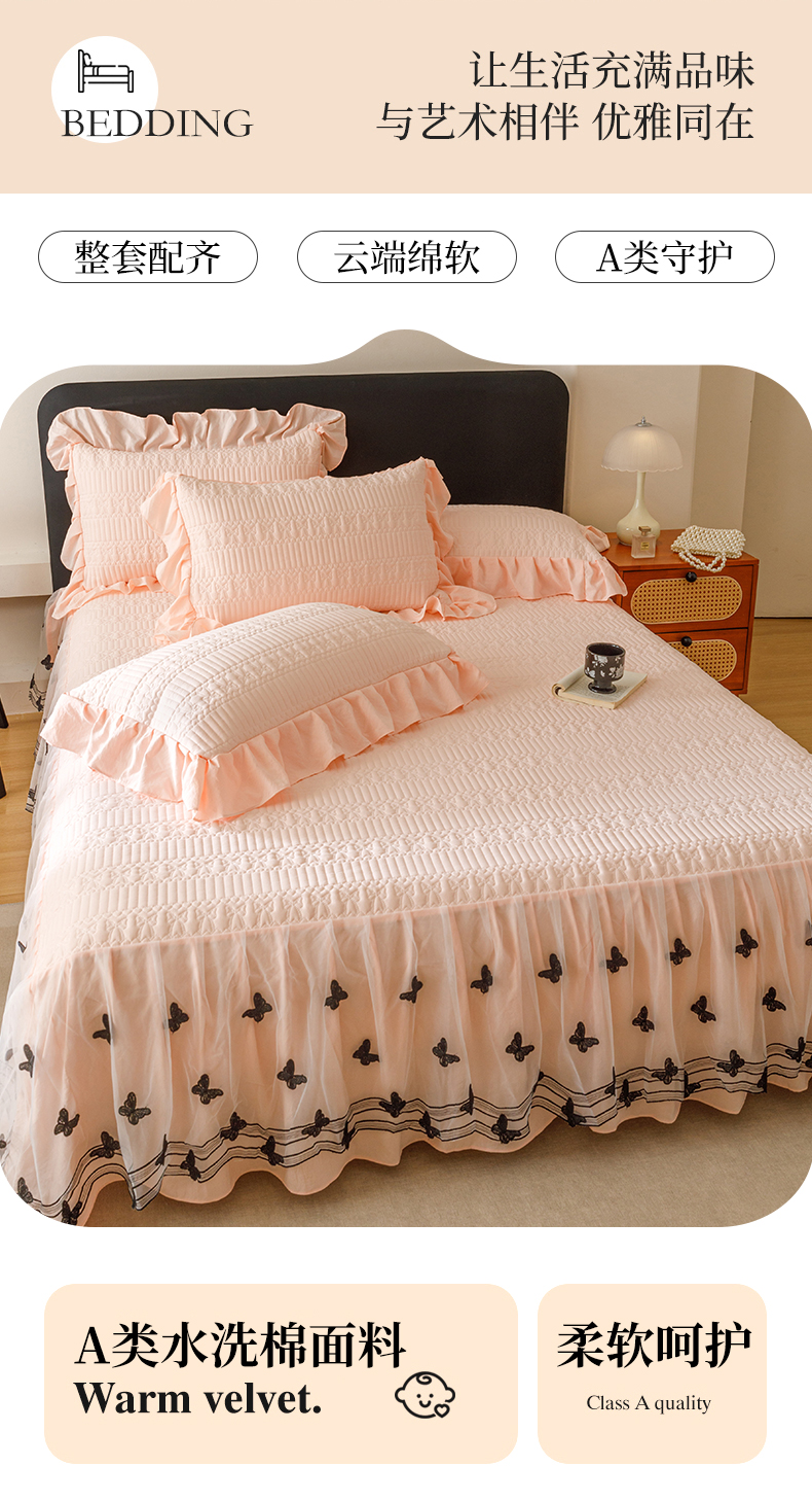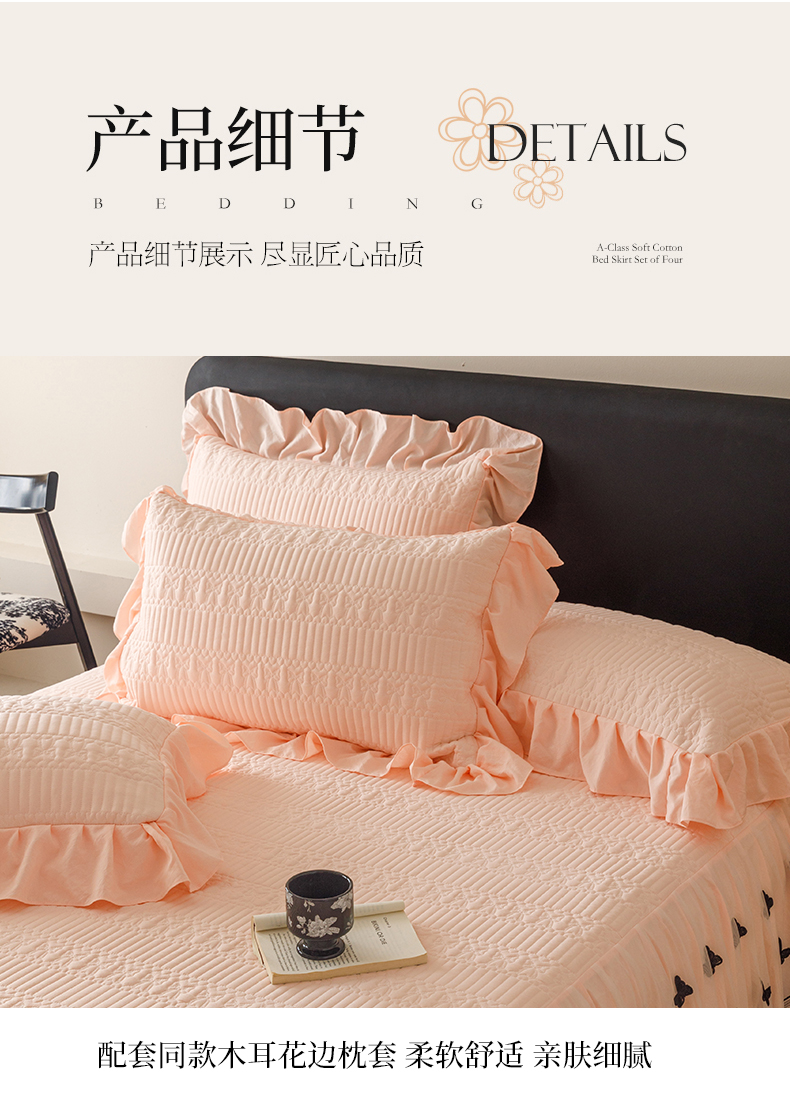 当前位置: 91家纺网 > 商品网购 > 床品套件 > 四件套 > 牛奶绒四件套 > 好儿喜家纺 2025新款A类水洗棉床裙三件套-凝香系列 凝香-浅粉