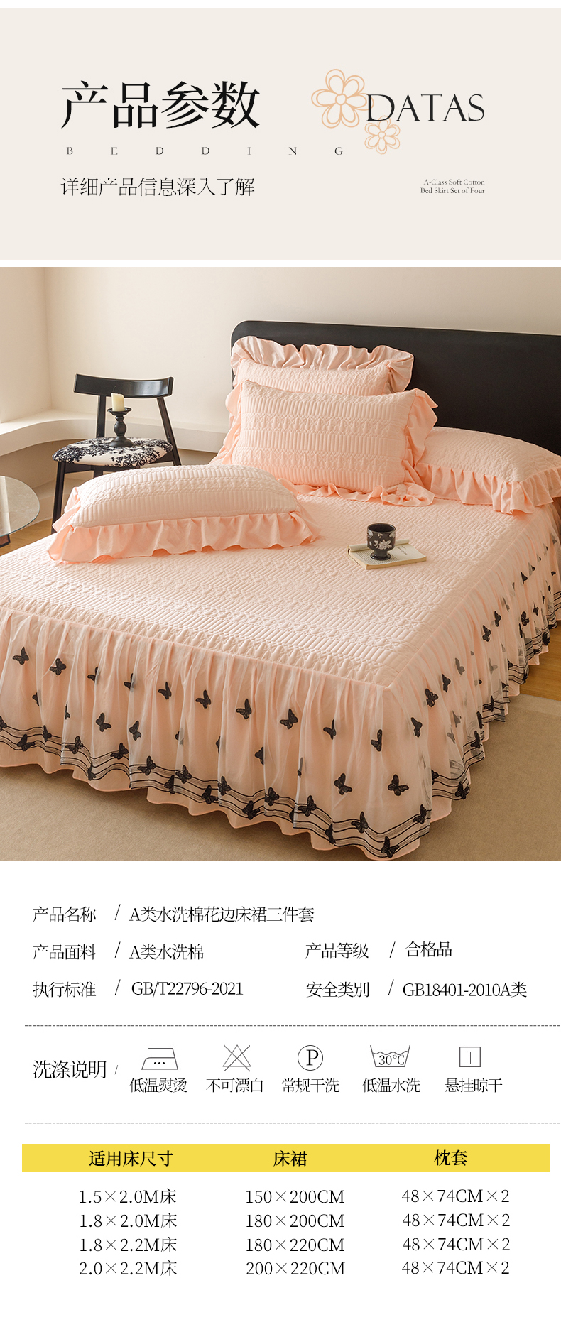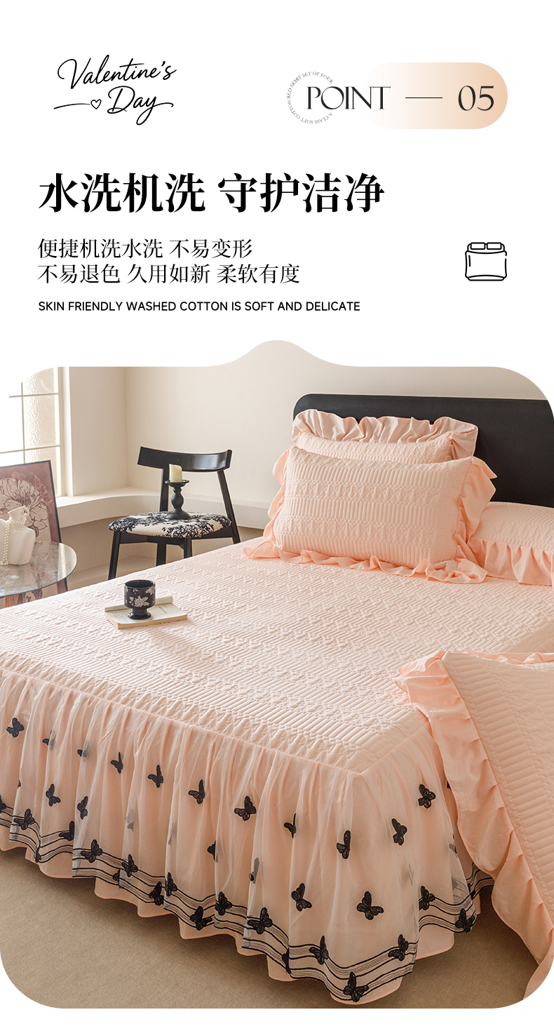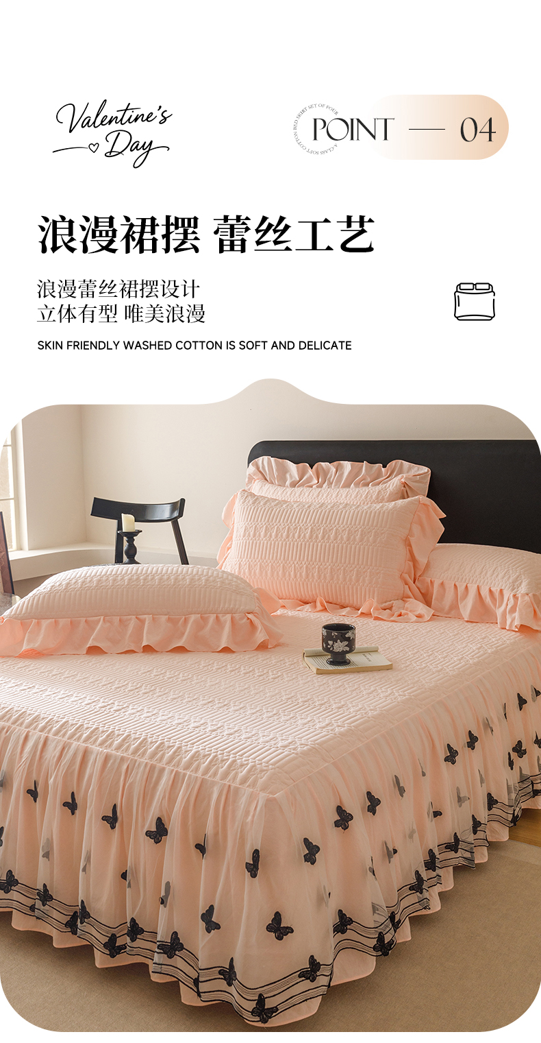 当前位置: 91家纺网 > 商品网购 > 床品套件 > 四件套 > 牛奶绒四件套 > 好儿喜家纺 2025新款A类水洗棉床裙三件套-凝香系列 凝香-浅粉