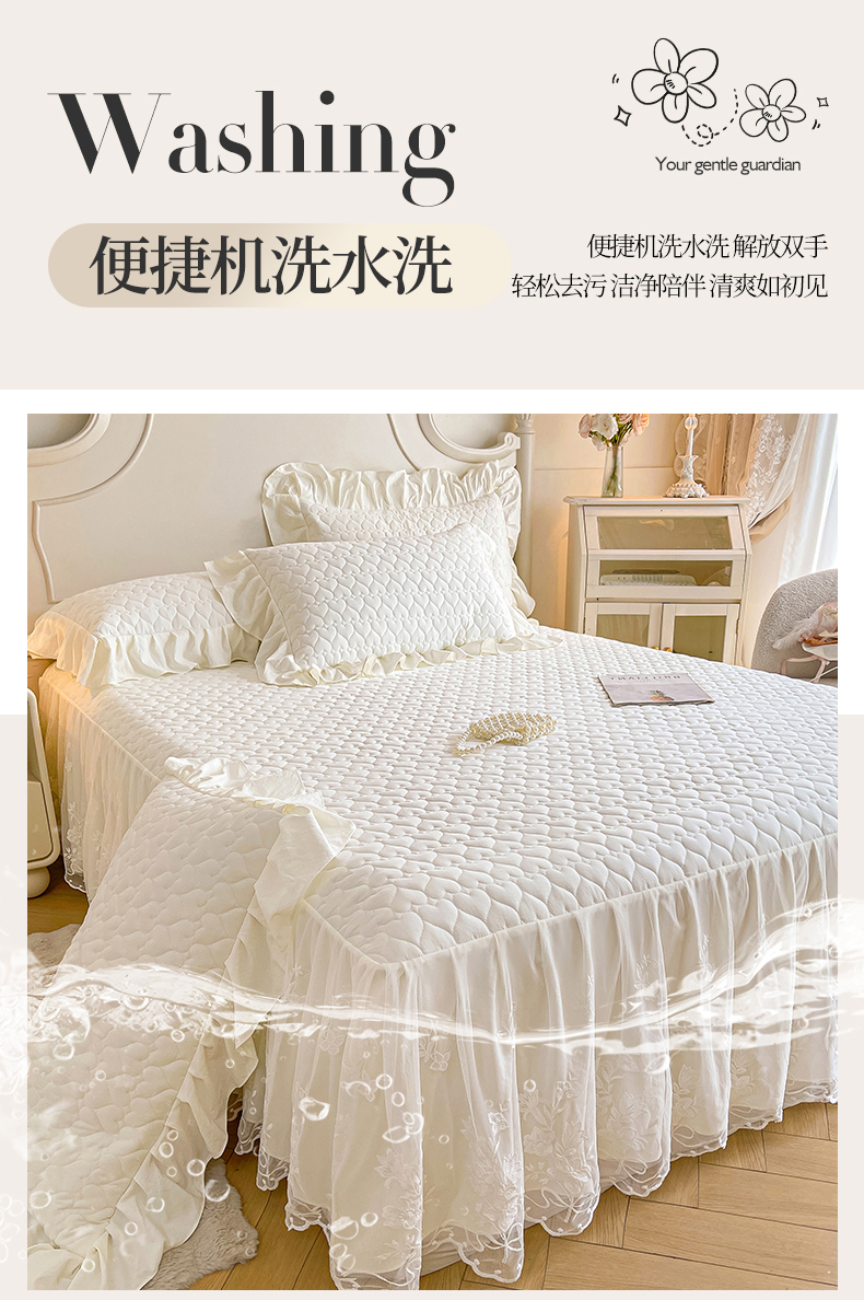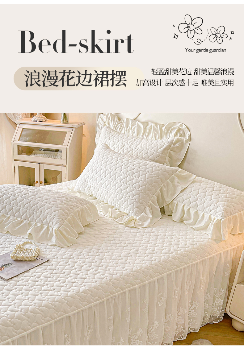 当前位置: 91家纺网 > 商品网购 > 床品套件 > 四件套 > 牛奶绒四件套 > 好儿喜家纺 2025新款A类水洗棉床裙三件套-心语系列 心语-奶白