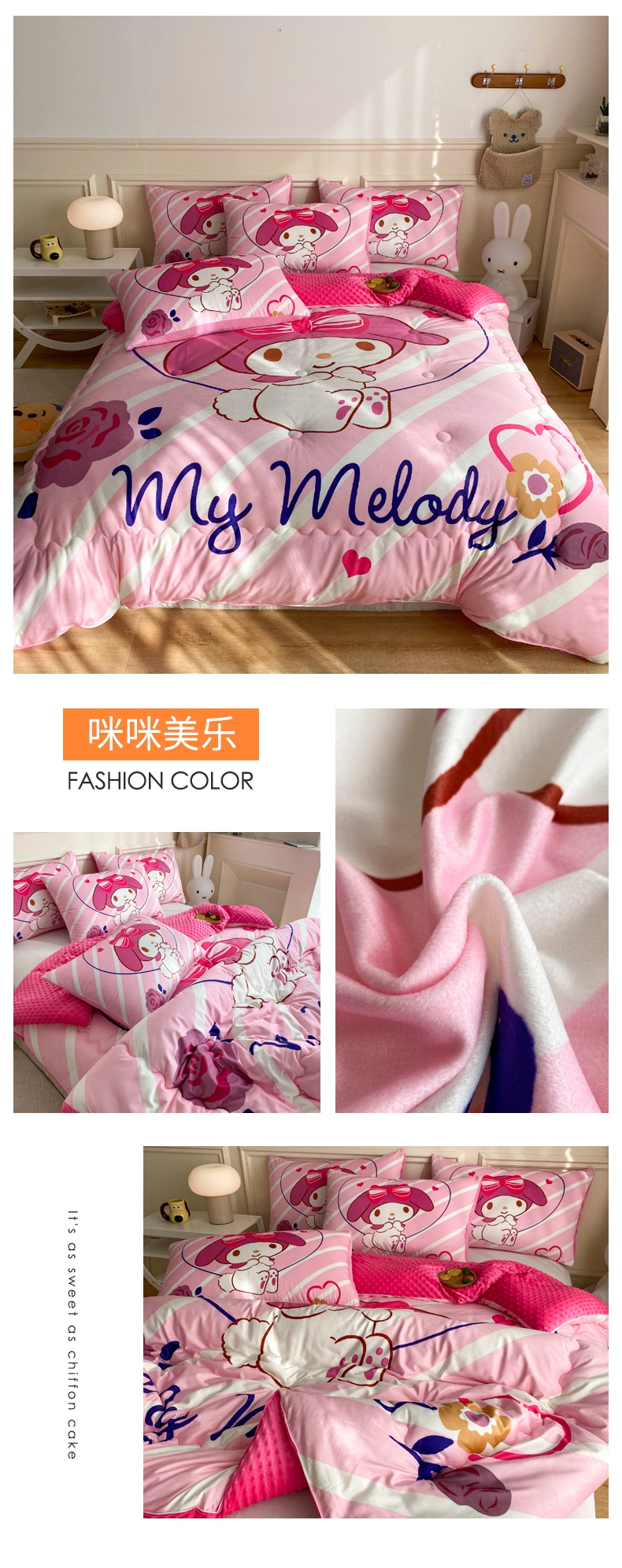(总)一电 2025新款冬季双面牛奶珊瑚绒床上四件套法兰绒床品加绒被套床单三件套-第三批,公主库洛米,天使库洛米,甜筒库洛米,小兔子,圆点库洛米
