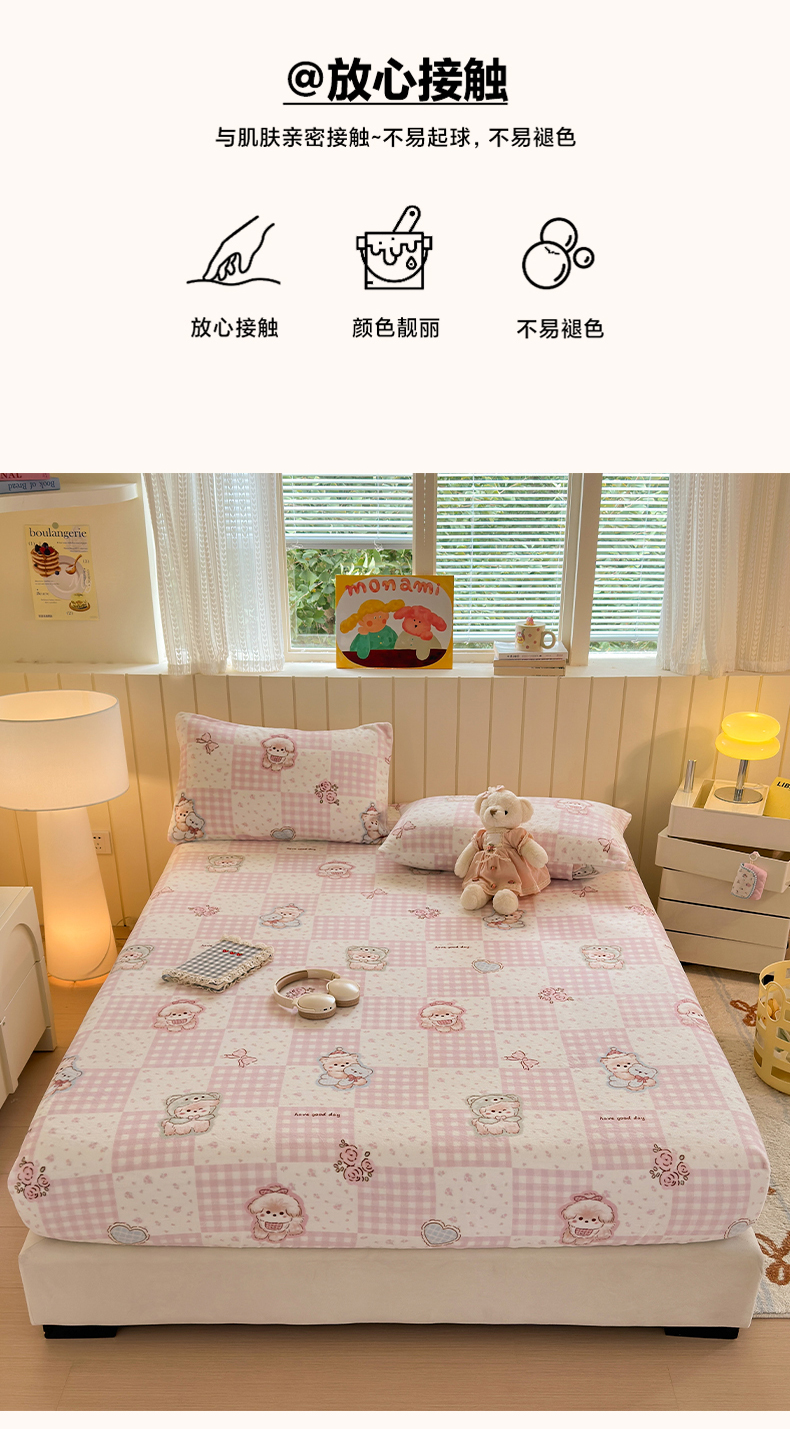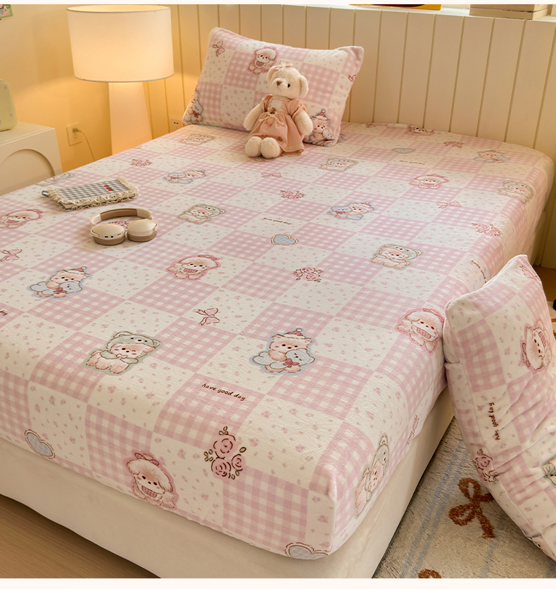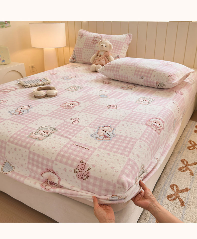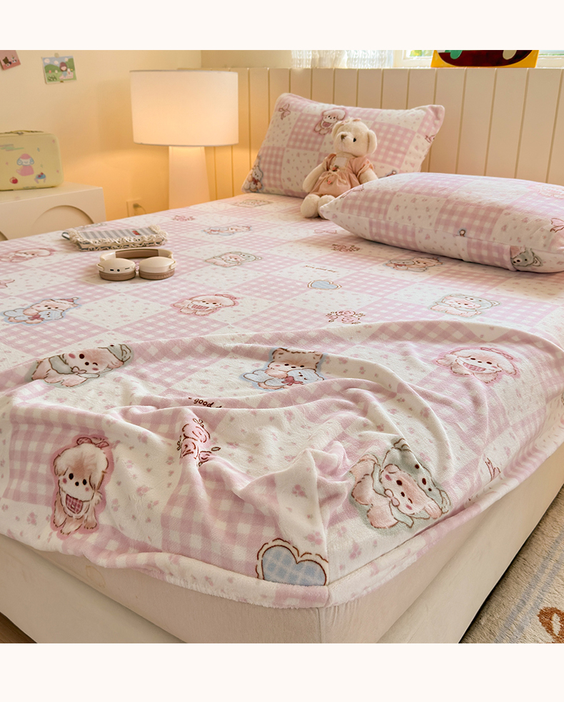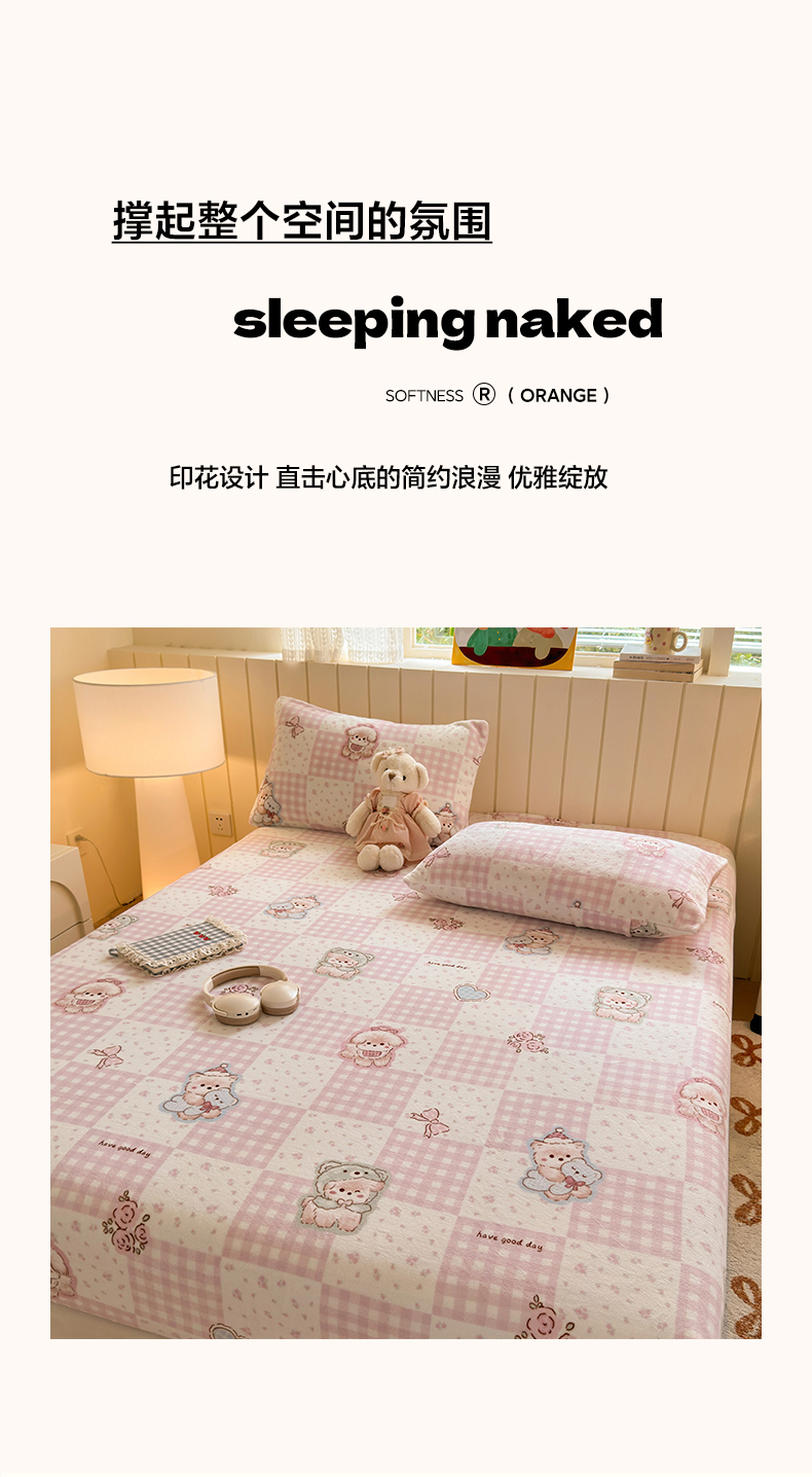 丽美人家纺 2025年牛奶绒小版印花床笠单床笠床笠单件 萌熊日记