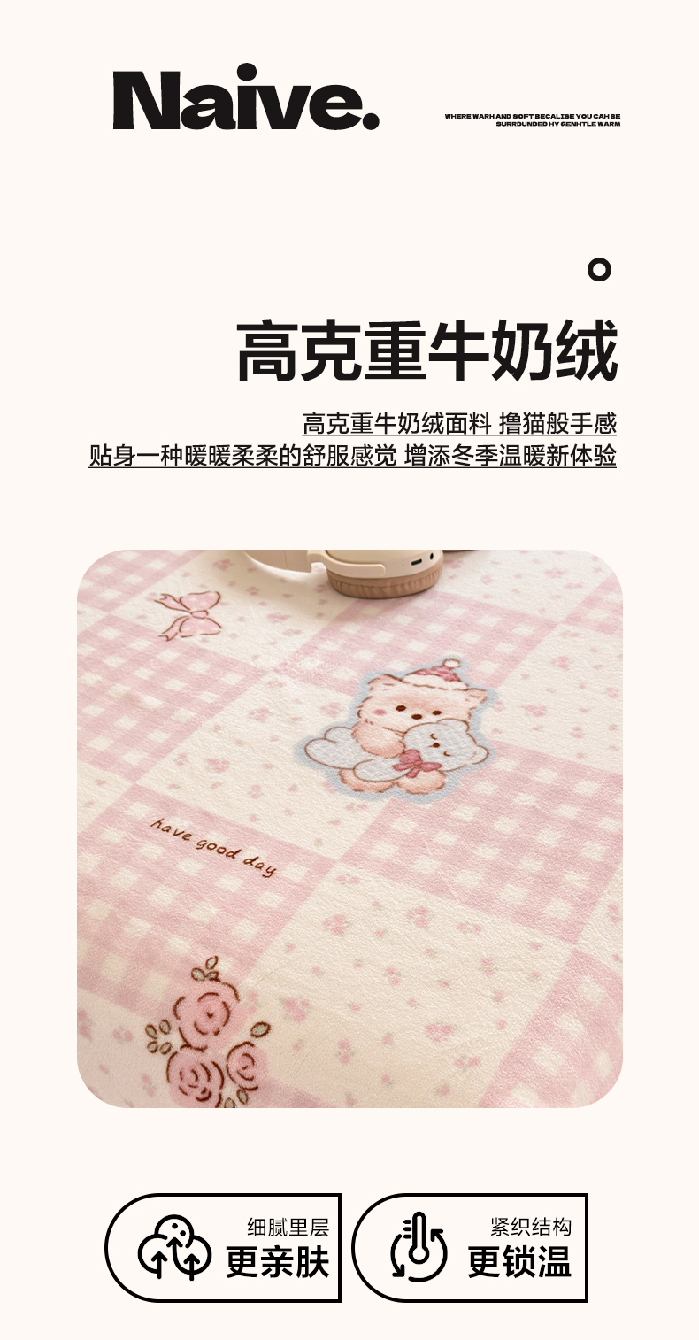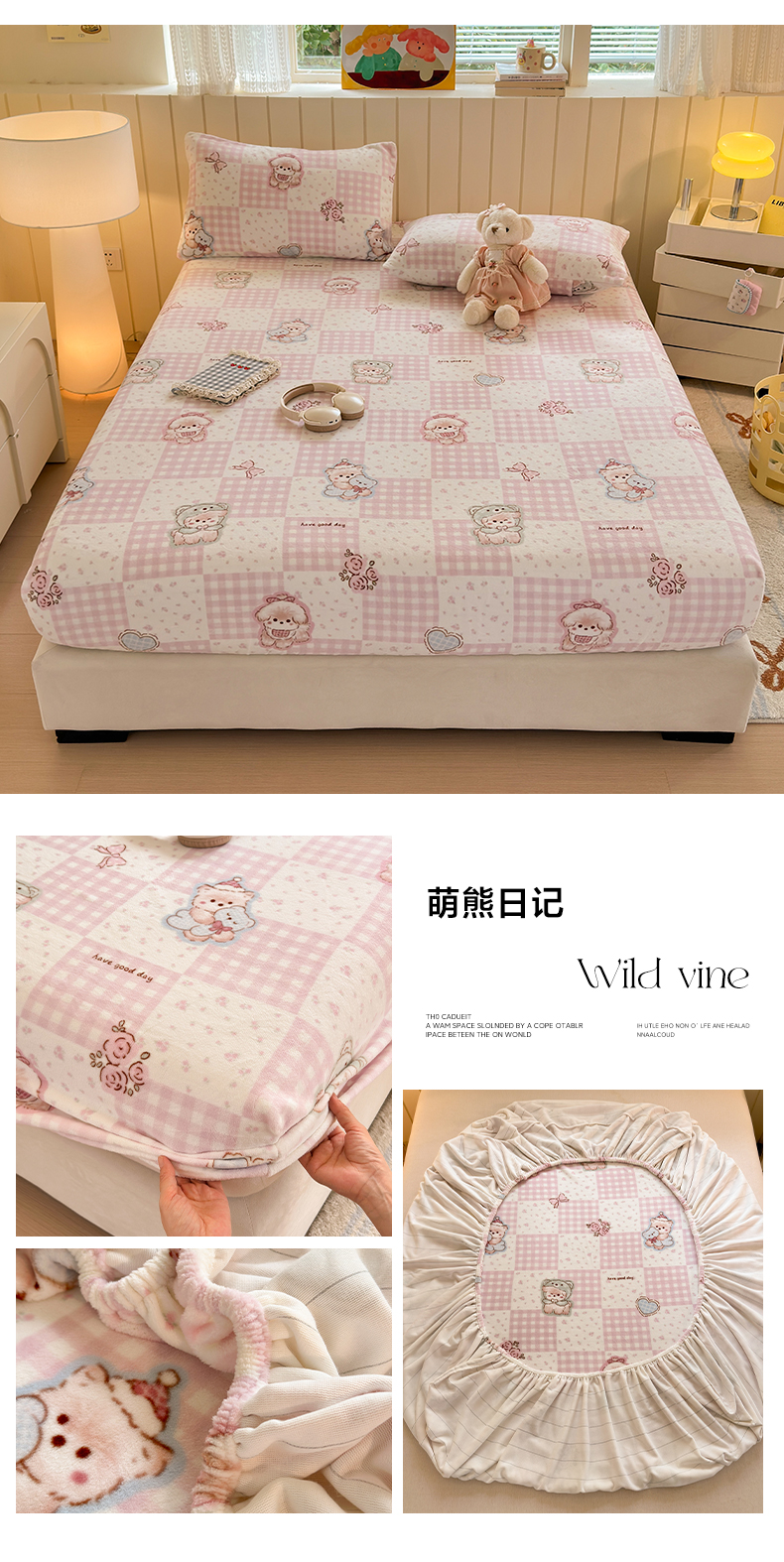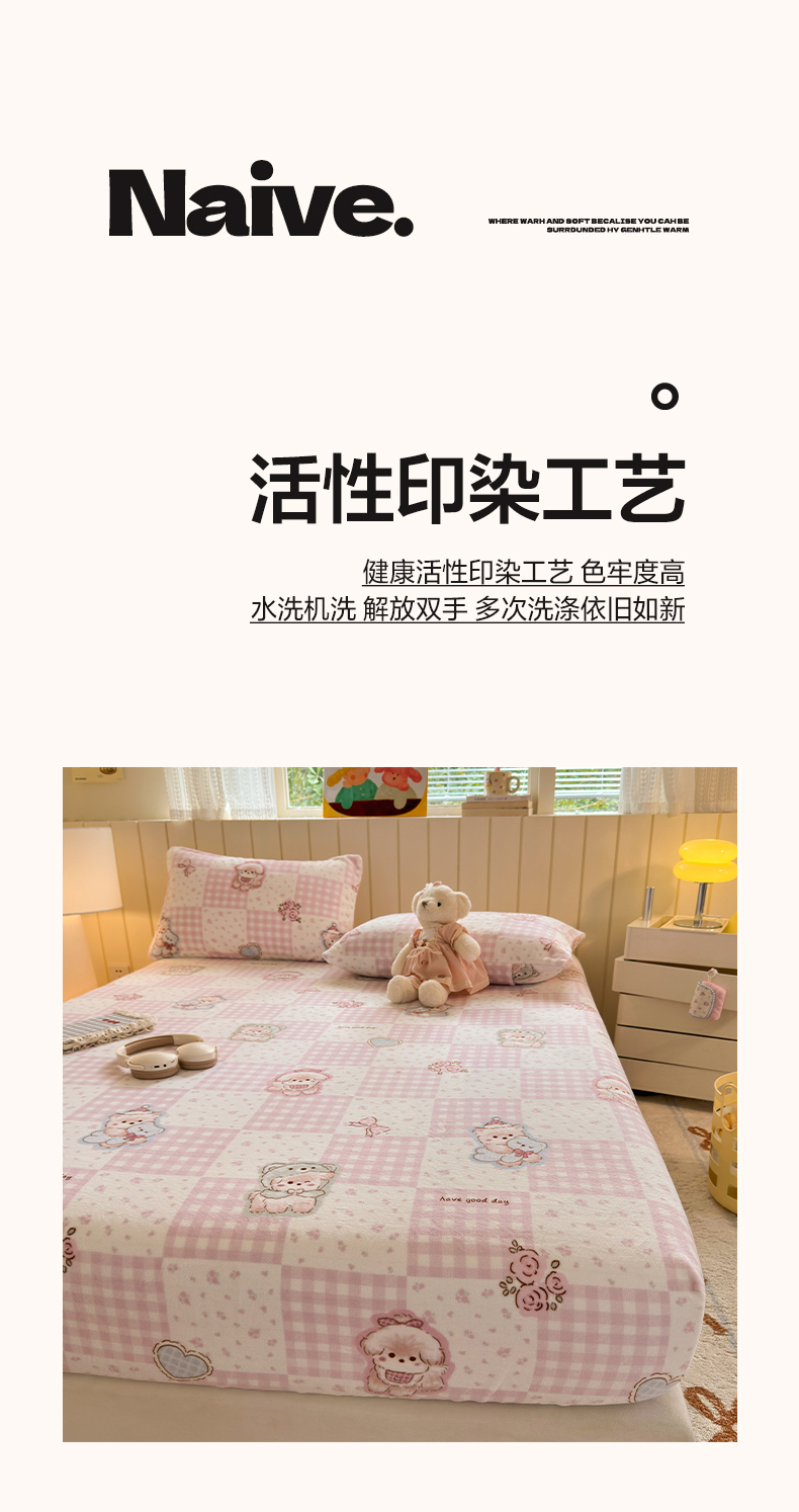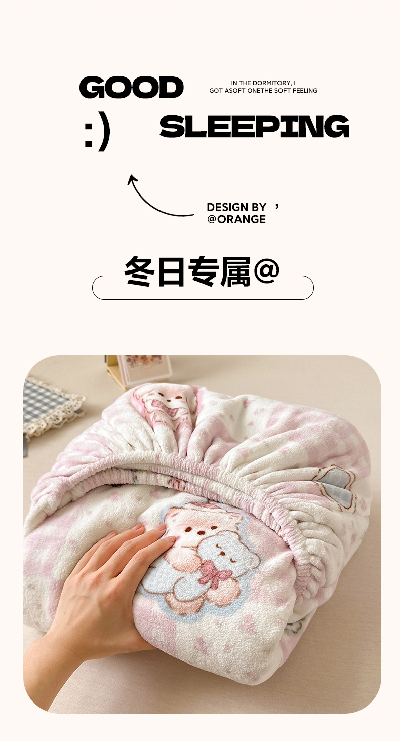 丽美人家纺 2025年牛奶绒小版印花床笠单床笠床笠单件 萌熊日记