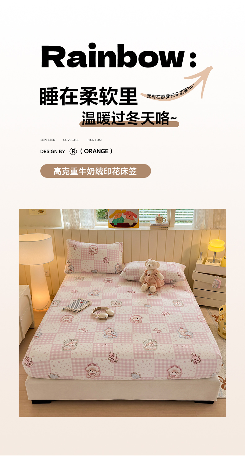 • 91家纺网 家纺一手货源 找家纺 丽美人家纺 2025年牛奶绒小版印花床笠单床笠床笠单件 萌熊日记