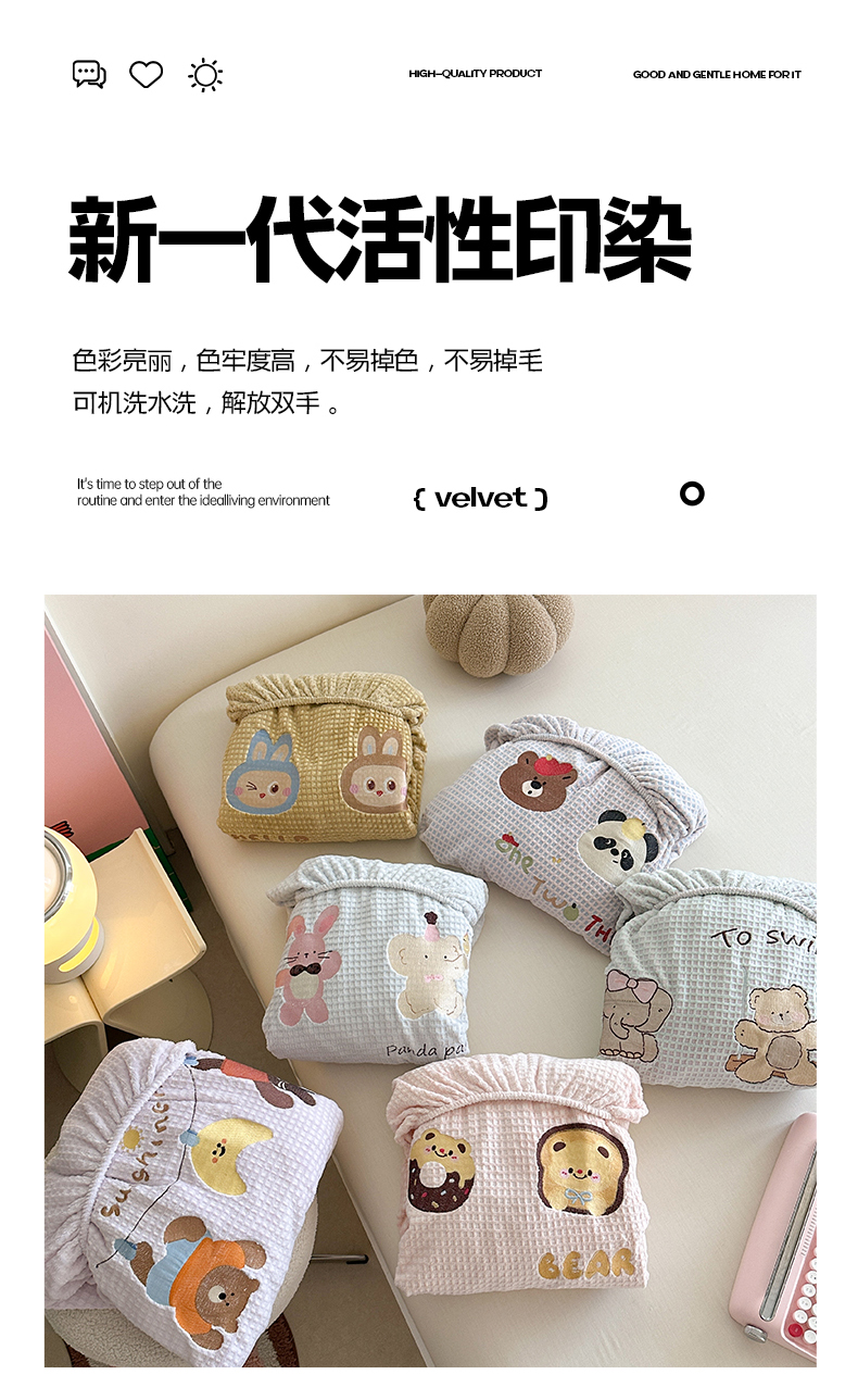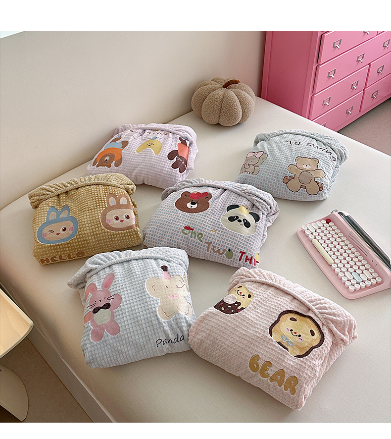 (总)暖生活 2025新款230g牛奶雕花绒单床笠-三小只,三只派对,三只布布,三只秋千,三只甜品,三只甜崽,三只头像