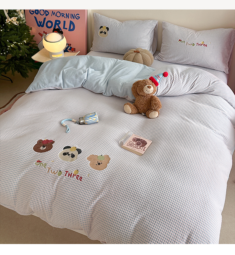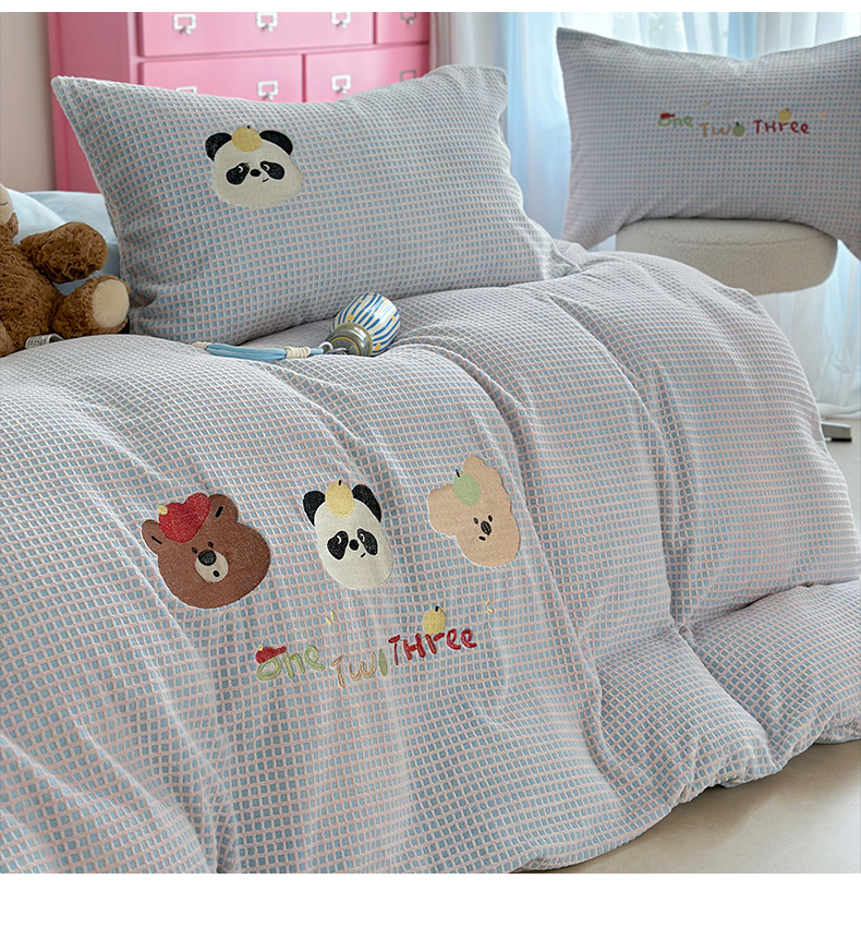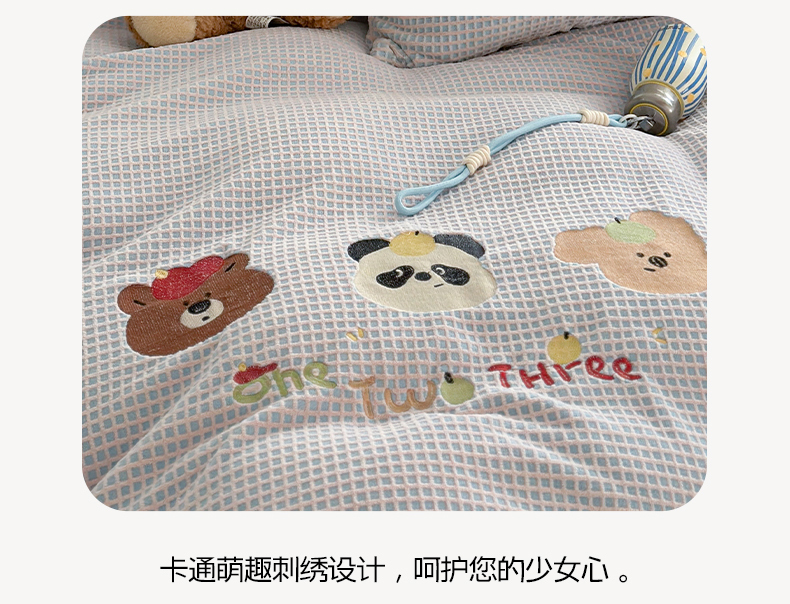 (总)暖生活 2025新款高克重细颗粒羊羔绒牛奶绒毛巾绣四件套,梅梅熊,童年时光-兰,童年时光-米,小短腿