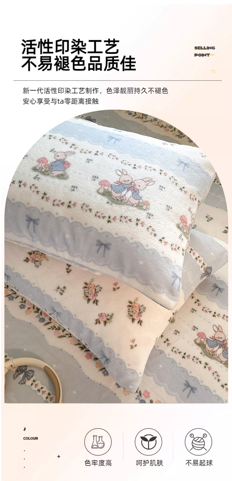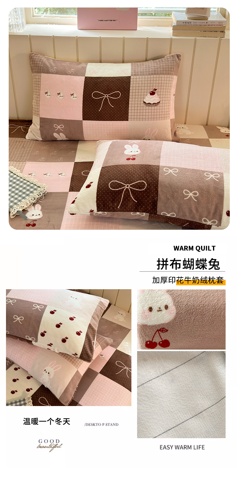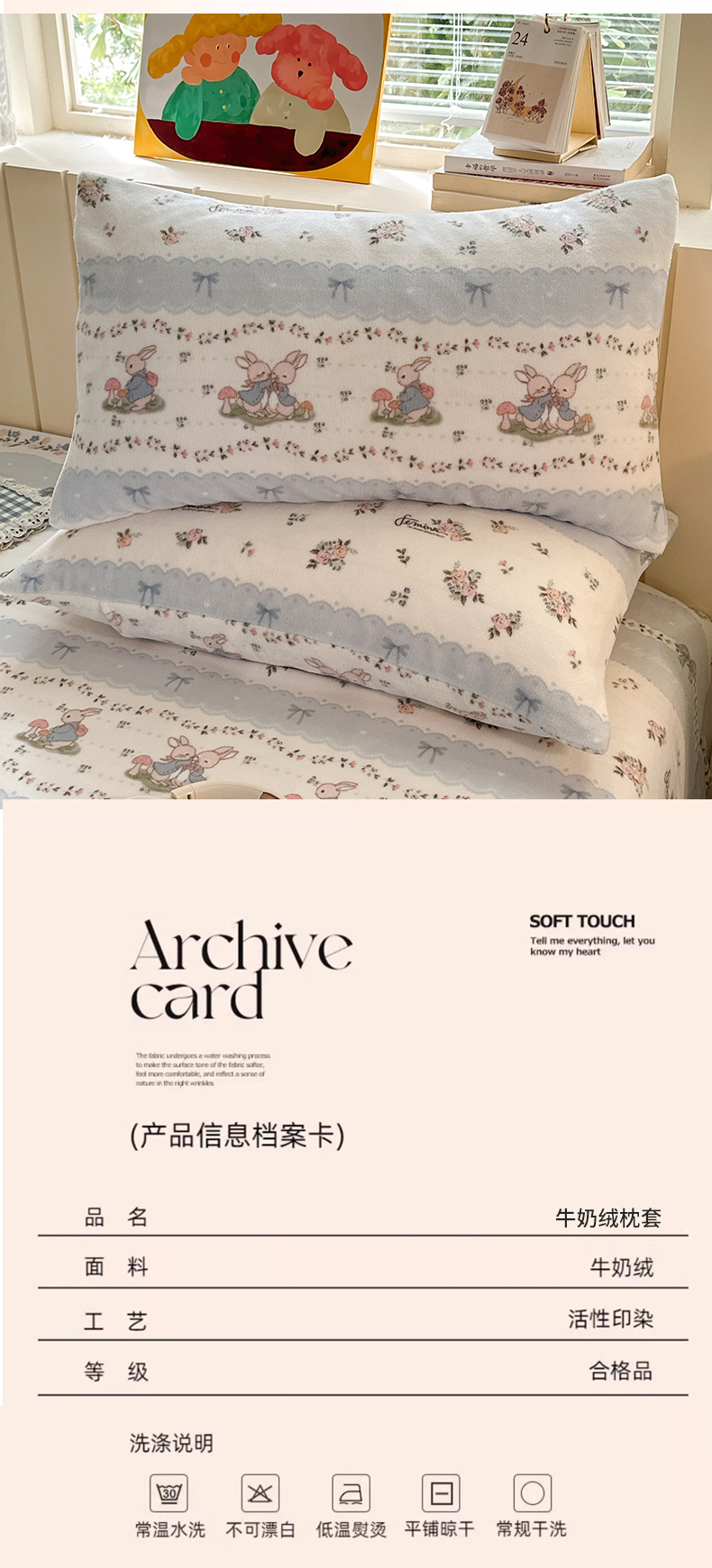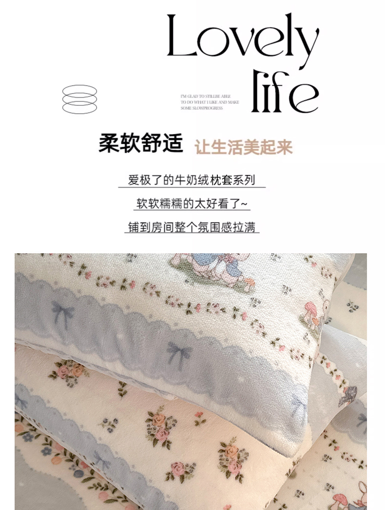丽美人家纺 2025新款牛奶绒小版枕套 花边小兔